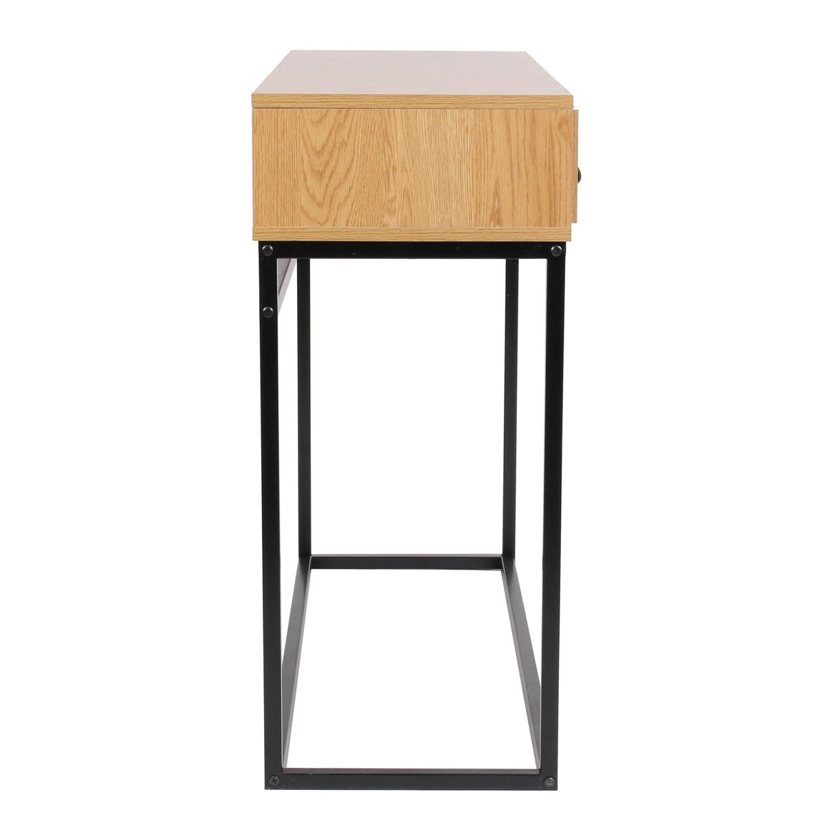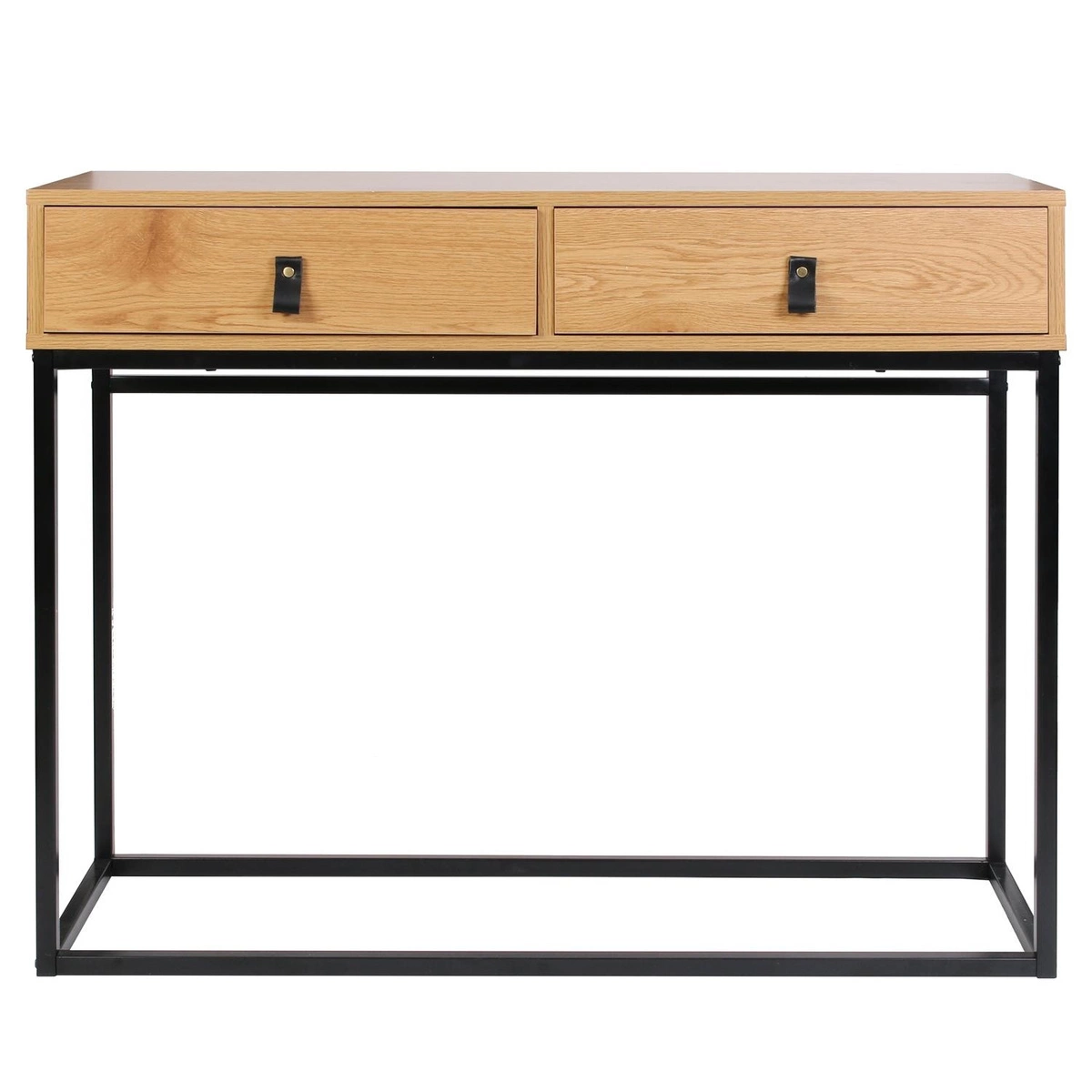 Konsola zaprojektowana została z myślą o uniwersalnym wpisaniu się w różne potrzeby. Pięknie wygląda w domowym salonie, ale świetnie uzupełni również wnętrze w przestrzeni biurowej. Prostota jej formy stanowi kluczowy motyw w łatwej aranżacji z jej zastosowaniem. Konsola Abbott powstała ze sprawdzonych materiałów najwyższej jakości. Blat wykonano z trwałej i solidnej płyty laminowanej w kolorze złotego dębu. Nogi natomiast zaprojektowane zostały z bardzo wytrzymałego metalu, pomalowanego proszkowo na czarno. Blat oraz szuflady dają mnóstwo przestrzeni, którą można dowolnie zagospodarować. Ciekawe ułożenie nóg daje nie tylko stabilną podporę mebla, ale również sprawia, że całość wygląda niebanalnie. Waga konsoli: 17 kg Max ilość szt. w kartonie: 1 Wymiary kartonu: 101cm x 36cm x 12cmPodmiot odpowiedzialny za ten produkt na terenie UE