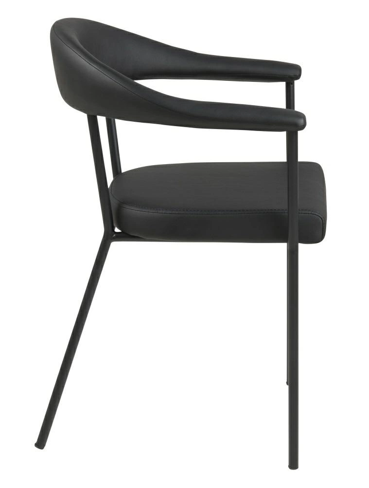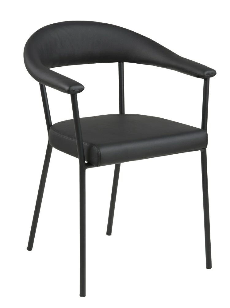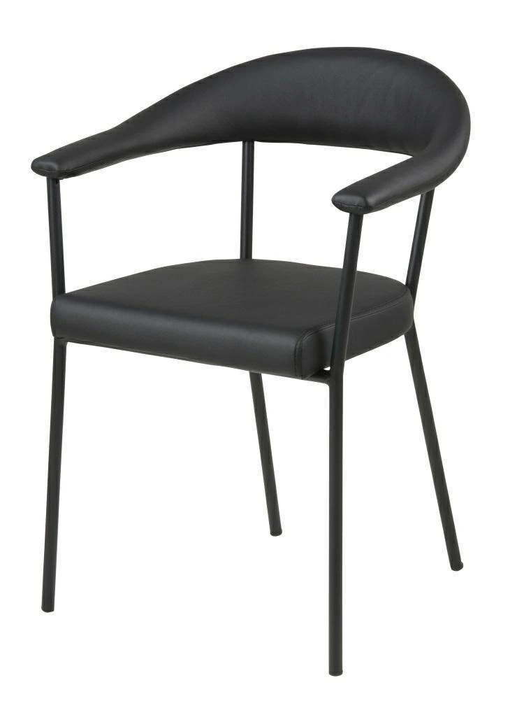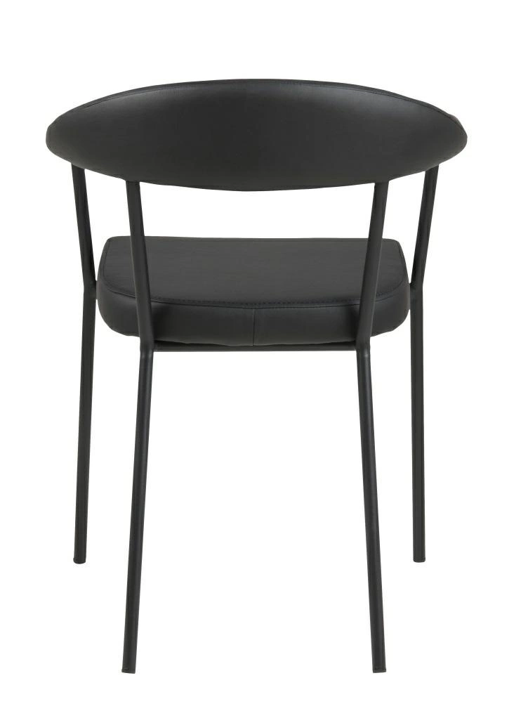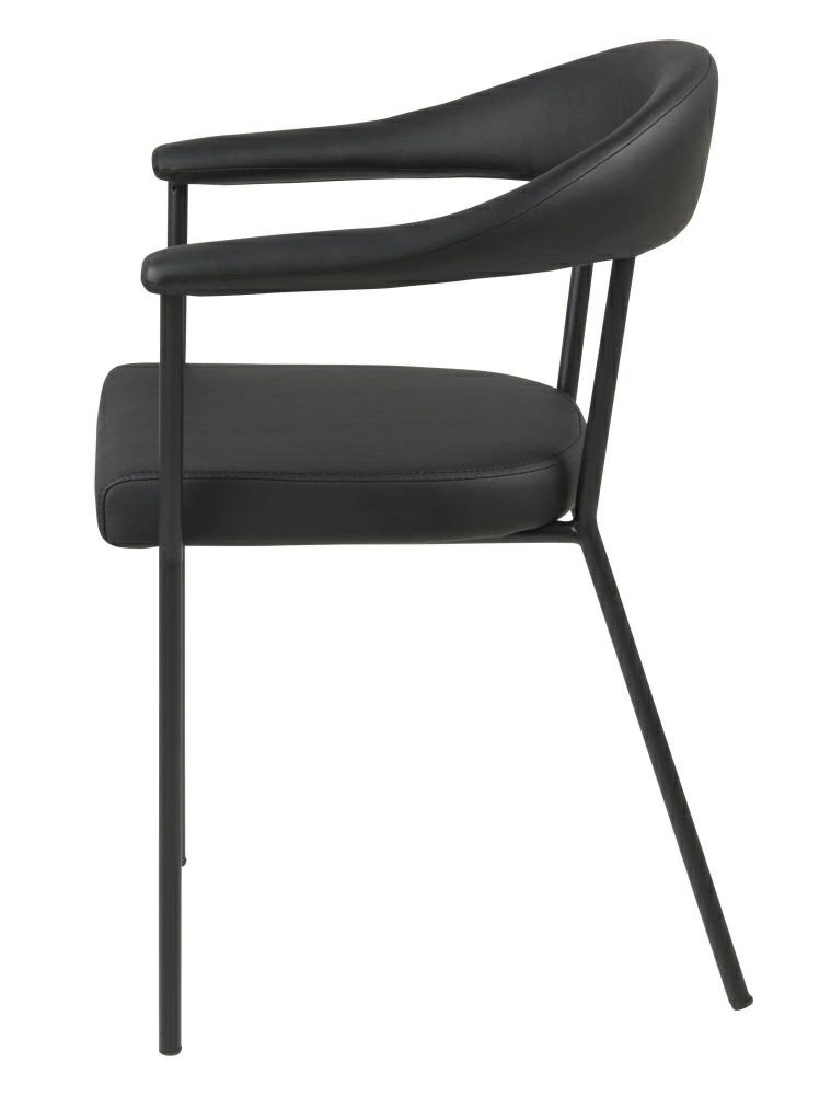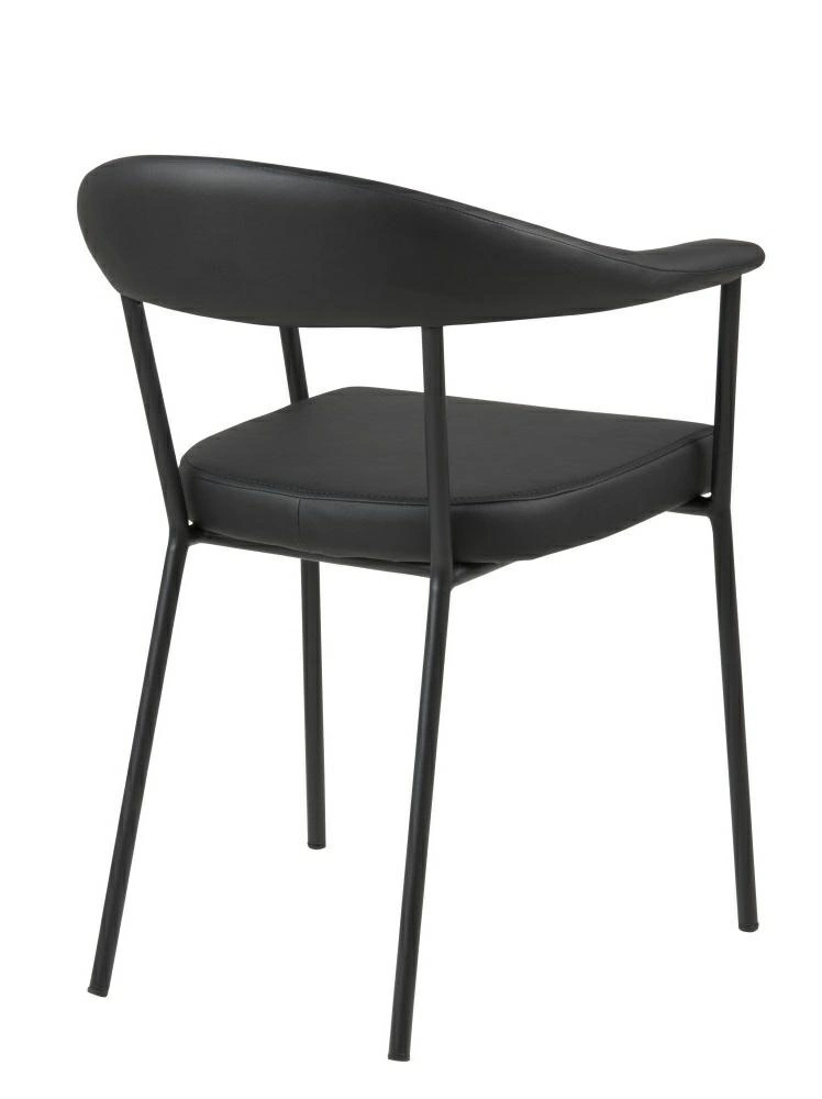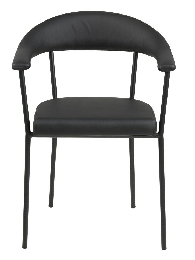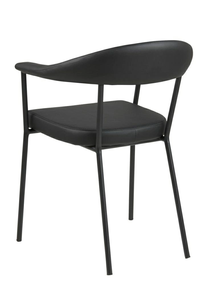 Minimalistyczne Krzesło Ava wykonane zostało z ekologicznej skóry oraz metalu. Siedzisko krzesła i oparcie zostały zrobione z miekkiej gąbki oraz są obszyte czarną klasyczną ekoskórą. Oparcie krzesła tworzy estetyczną całość z połączonymi z nim podłokietnikami. Designerskie nogi krzesła zostały pomalowane proszkowo na czarno, dodatkowo posiadają nakładki, które zabezpieczają przed uszkodzeniami powierzchni. Dzięki temu krzesło pozostanie również stabilne podczas użytkowania. Wysokość siedziska: 47,5 cm Szerokość siedziska: 42,5 cm Głębokość siedziska: 41 cm Wysokość podłokietników: 18,5 cm