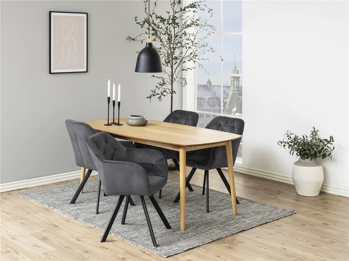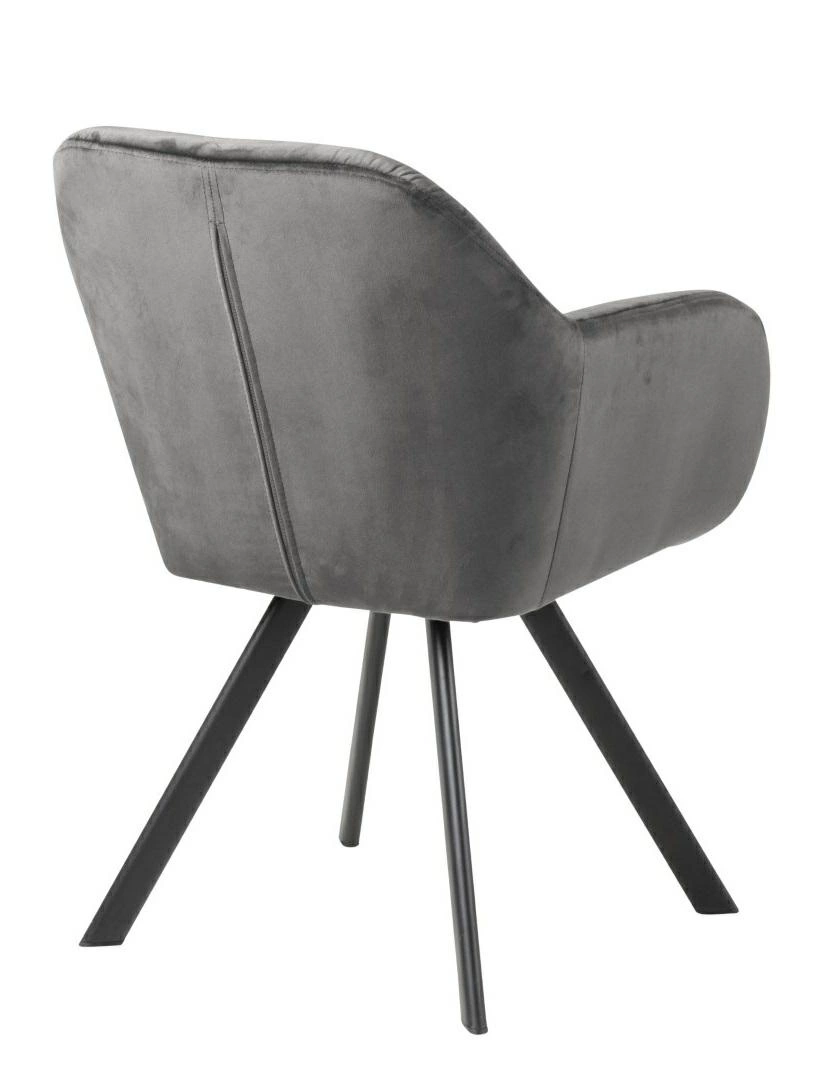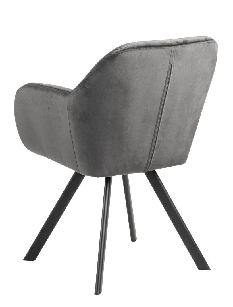 Krzesło Lola jest krzesłem tapicerowanym miękką welwetową tkaniną VIC fabric dark grey 28. Krzesło posiada idealnie wyprofilowane podłokietniki, które tworzą z siedziskiem i oparciem spójną całość. Oparcie krzesła zostało ozdobione pikowaniem, które dodaje mu stylu. Podstawą krzesła są malowane proszkowo na czarno metalowe nogi. Ciekawy kształt podstawy dodaje całości lekkości. Krzesło posiada funkcję "auto-return", która sprawia, że po skończonym użytkowaniu ruchome siedzisko wróci do właściwej pozycji. Maksymalne obciążenie: 120 kg. Waga Krzesła: 11,4 kg Wymiary kartonu: 61cm x 50,5cm x 58cm Ilość maksymalna szt. w kartonie: 1 Wysokość siedziska: 47,5 cm Szerokość siedziska: 40 cm Głębokość siedziska: 41 cm Wysokość podłokietników: 22 cmPodmiot odpowiedzialny za ten produkt na terenie UE
