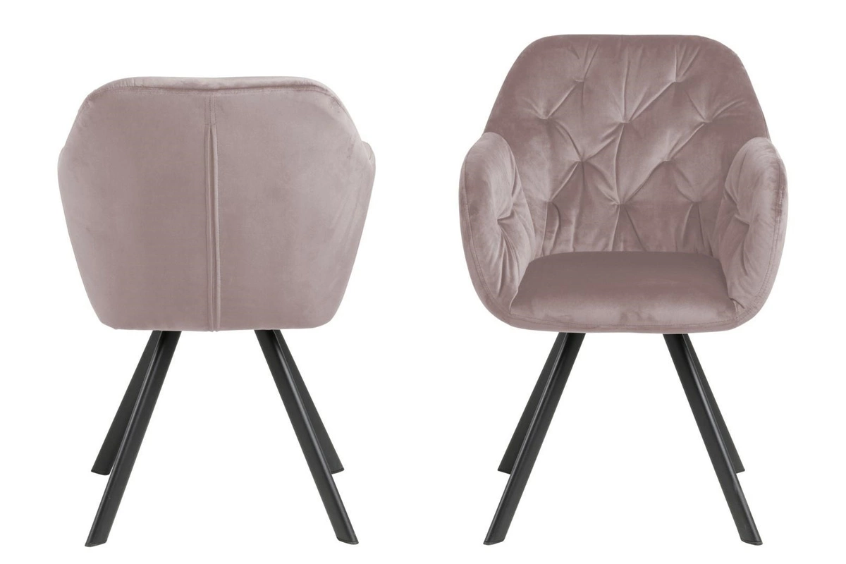 Krzesło Lola jest krzesłem tapicerowanym miękką welwetową tkaniną VIC fabric dusty rose 18. Krzesło posiada idealnie wyprofilowane podłokietniki, które tworzą z siedziskiem i oparciem spójną całość. Oparcie krzesła zostało ozdobione pikowaniem, które dodaje mu stylu. Podstawą krzesła są malowane proszkowo na czarno metalowe nogi. Ciekawy kształt podstawy dodaje całości lekkości. Krzesło posiada funkcję "auto-return", która sprawia, że po skończonym użytkowaniu ruchome siedzisko wróci do właściwej pozycji. Maksymalne obciążenie: 120 kg. Waga Krzesła: 11,4 kg Wymiary kartonu: 61cm x 50,5cm x 58cm Ilość maksymalna szt. w kartonie: 1 Wysokość siedziska: 47,5 cm Szerokość siedziska: 40 cm Głębokość siedziska: 41 cm Wysokość podłokietników: 22 cm