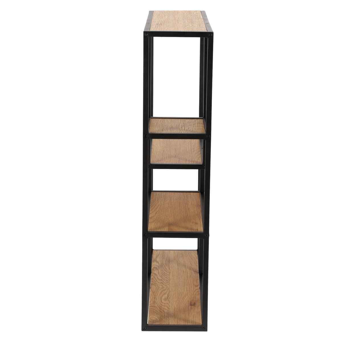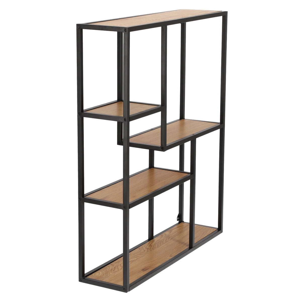 Regał Seafrod wykonany został z metalu oraz płyty MDF laminowanej w kolorze dębu. Asymetryczne rozmieszczenie półek dodaje całości mebla ciekawej formy. Regał doskonale sprawdzi się w pokoju nastolatka, domowym salonie czy przestrzeni komercyjnej. Regał wymaga montażu