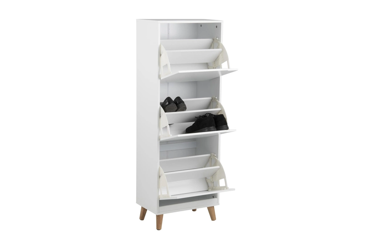 Niezwykle praktyczna, prosta i zachwycająca szafka na buty Mitra to doskonały mebel, który ułatwi porządkowanie Twojego obuwia ale nie tylko. Zrobiona z wysokiej jakości płyty MDF z 3 półkami prezentuje się stylowo.Nogi wykonane zostały z drewna dębowego. Doskonale sprawdzi się w każdym pomieszczeniu.