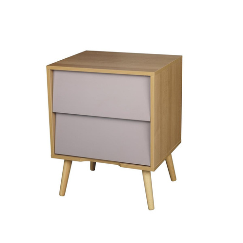 Szafka nocna Volet zachwyca minimalistyczną, lekką formą inspirowaną wiecznie modnym stylem skandynawskim. Szafka wyposażona został w dwie pojemne, zamykane półki, dzięki czemu pomoże w zorganizowaniu odpowiedniego miejsca na drobne przedmioty. Niewielki rozmiar szafki ułatwia dopasowanie do aranżacji. Korpus oraz fronty wykonane zostały z płyty MDF, czyli materiału niezwykle wytrzymałego i odpornego na uszkodzenia mechaniczne. Nóżki natomiast wykonane są z drewna sosnowego. Waga 12 kg Wymiary opakowania 41x52x42 cm