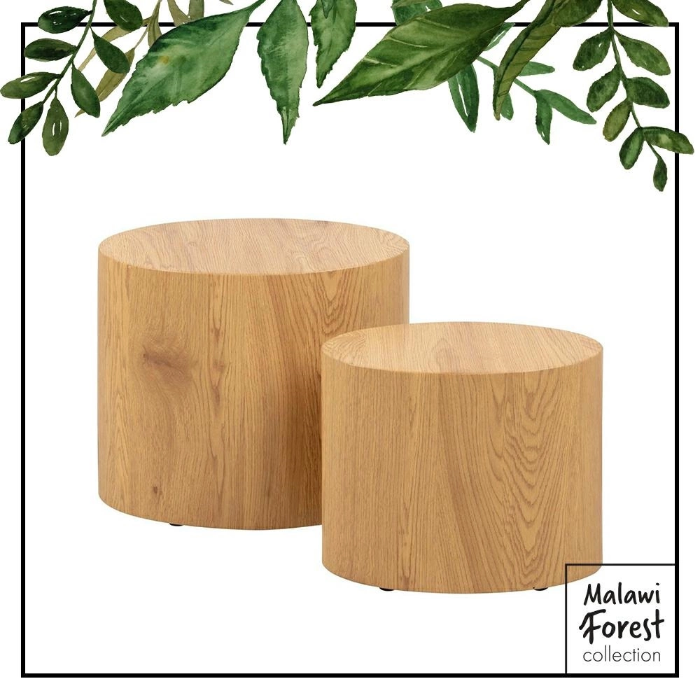 Zestaw stolików imitujących drewniane pieńki to stoliki oraz ozdoba w stylu boho. Owalne stoliki zostały zrobione z tworzywa powleczone okleiną imitującą dąb. Zestaw skłąda się z dwóch stolików. Waga: 9kg Wymiary: 33 cm x 48 cm x 40 cm 24,5 cm x40 cm x33 cm