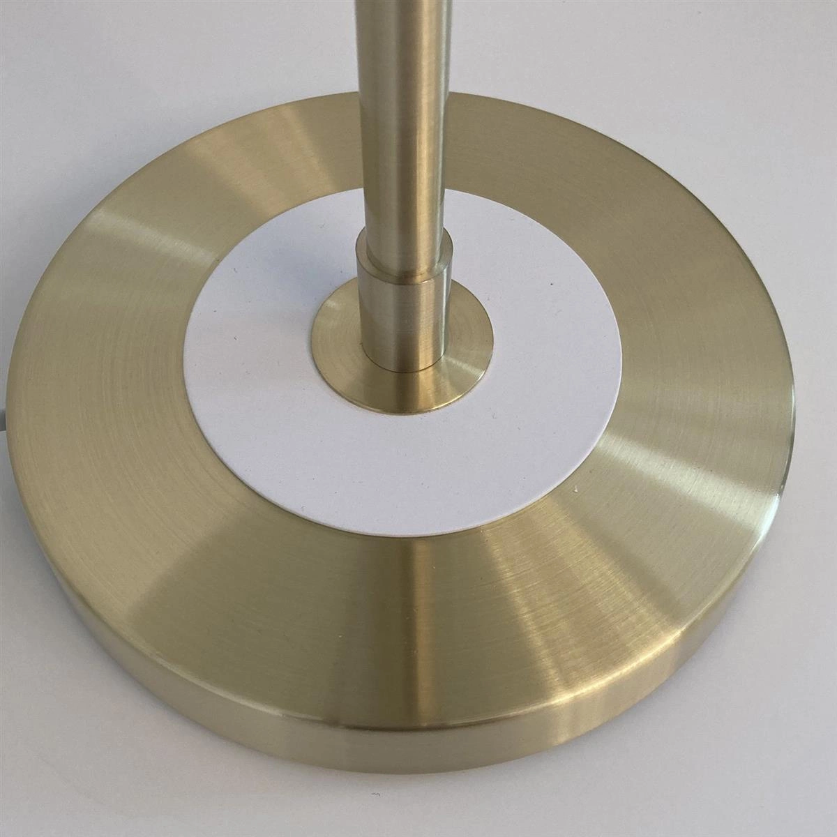 Stylowa podstawa lampy ozdobiona jest kołem w kolorze białym.