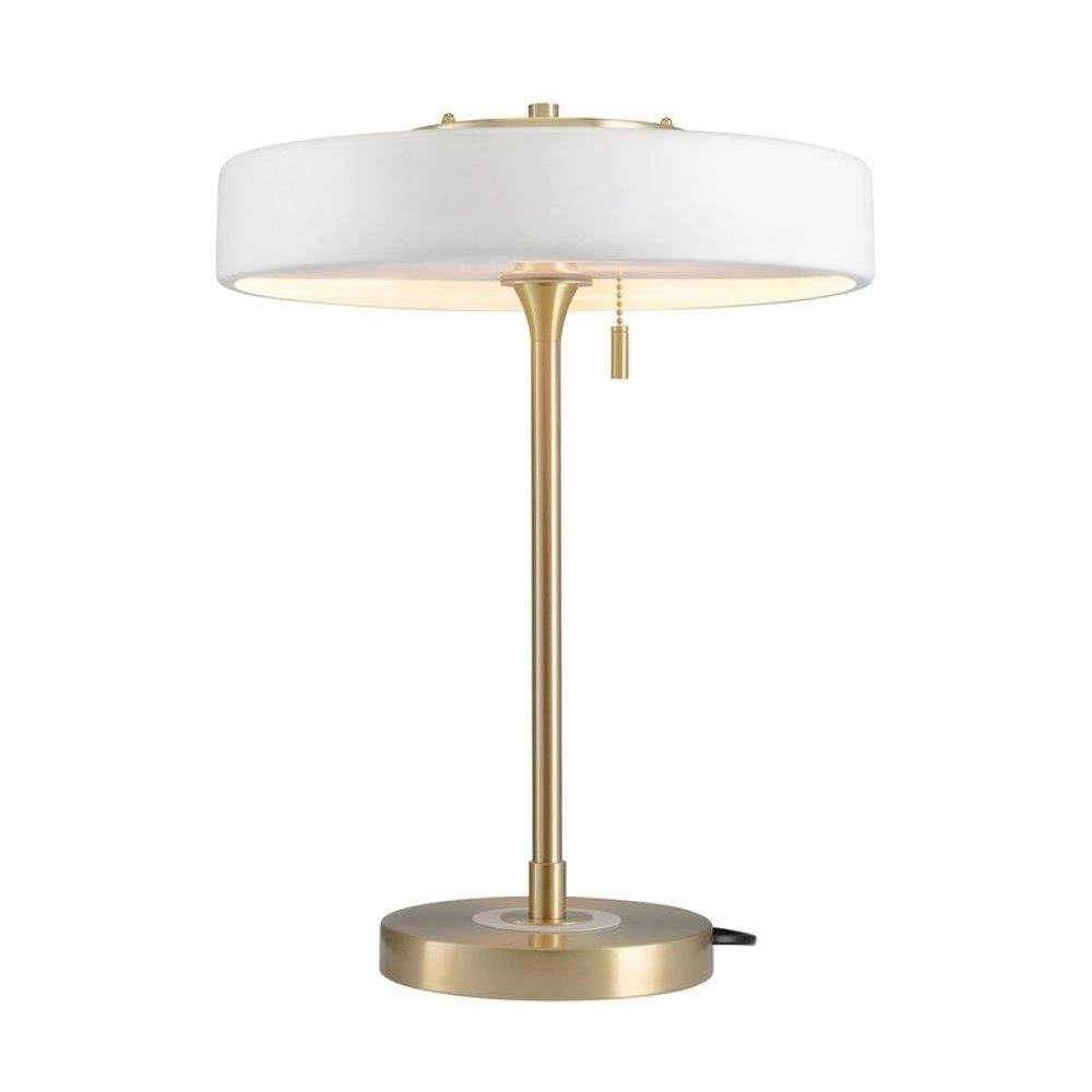 Elegancka lampa stołowa ARTDECO wykonana z metalu, wykończona jest na zewnątrz w matowym kolorze, środek stanowi mleczne pleksi.