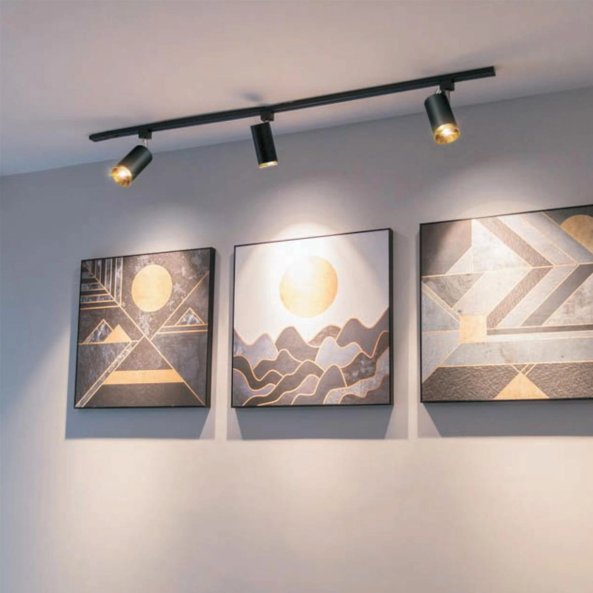 - Czarno złota lampa szynowa z akcentem plastra miodu na soczewce. Przy zakupie 3 sztuk, szynoprzewód o długości 2 metrów gratis.