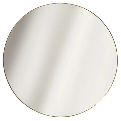 Okrągłe klasyczne lustro Navira nada nowy wymiar klasycznym wnętrzom. Idealnie okrągłe i płaskie lustro zostało oprawione ramą w kolorze złotym. Klasyczny wzór lustra w stylu glamour doda klasy jadalni lub w przedpokoju. Wymiary kartonu: 58,5x16,5x59,5cm Rozmieszczenie uchwytów: rozstaw uchwytów 26,7 cm, odległość od góry 18 cm, od boku 14cm Materiał ramy aluminium