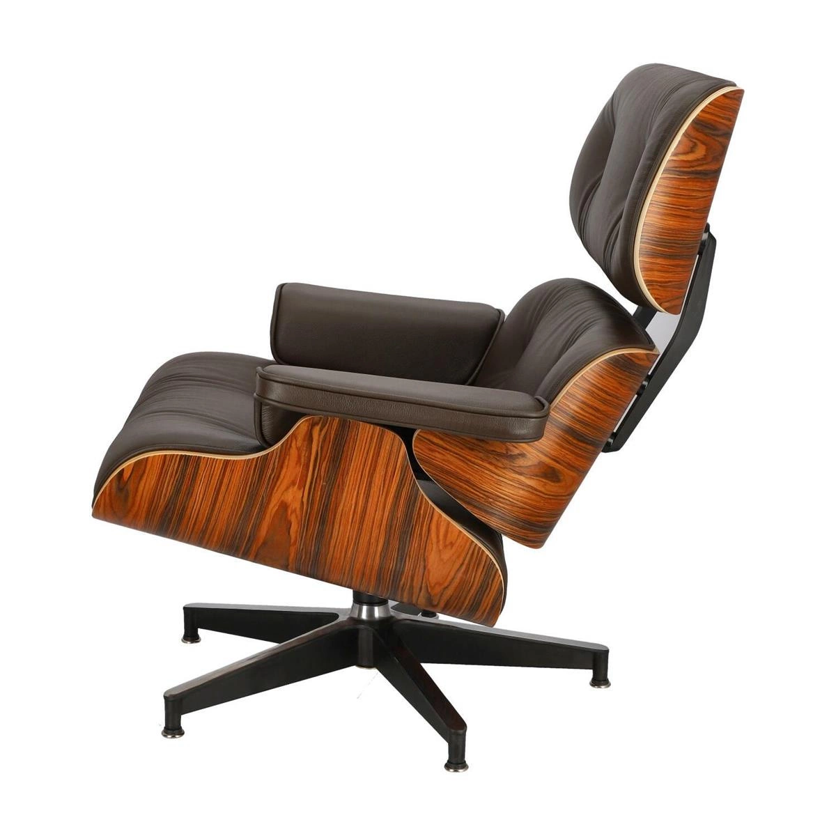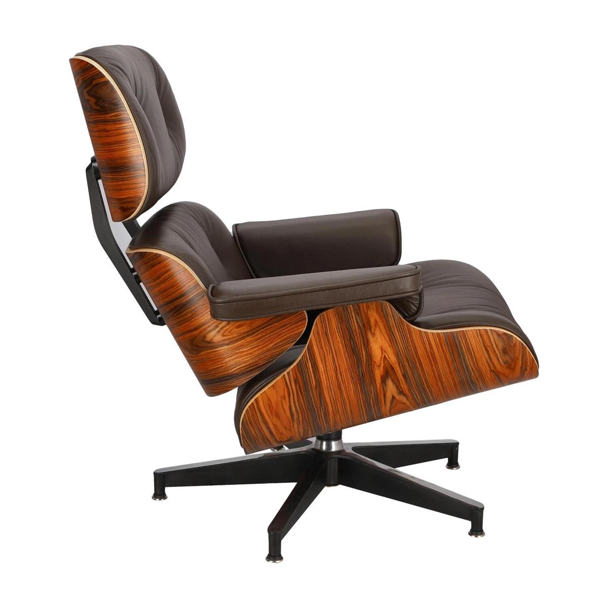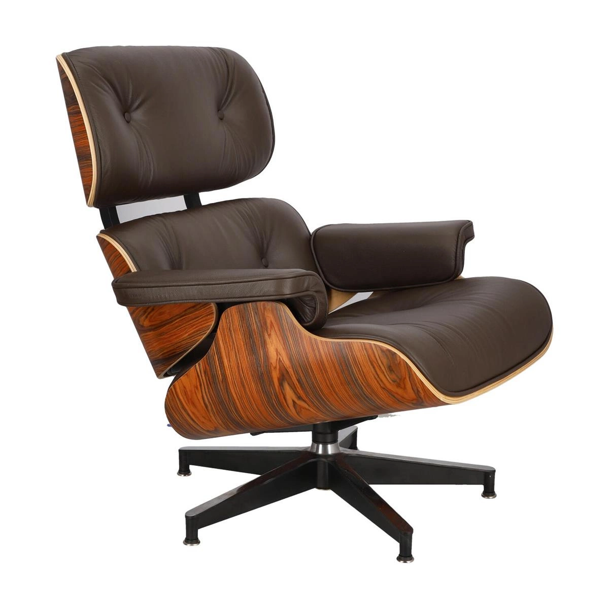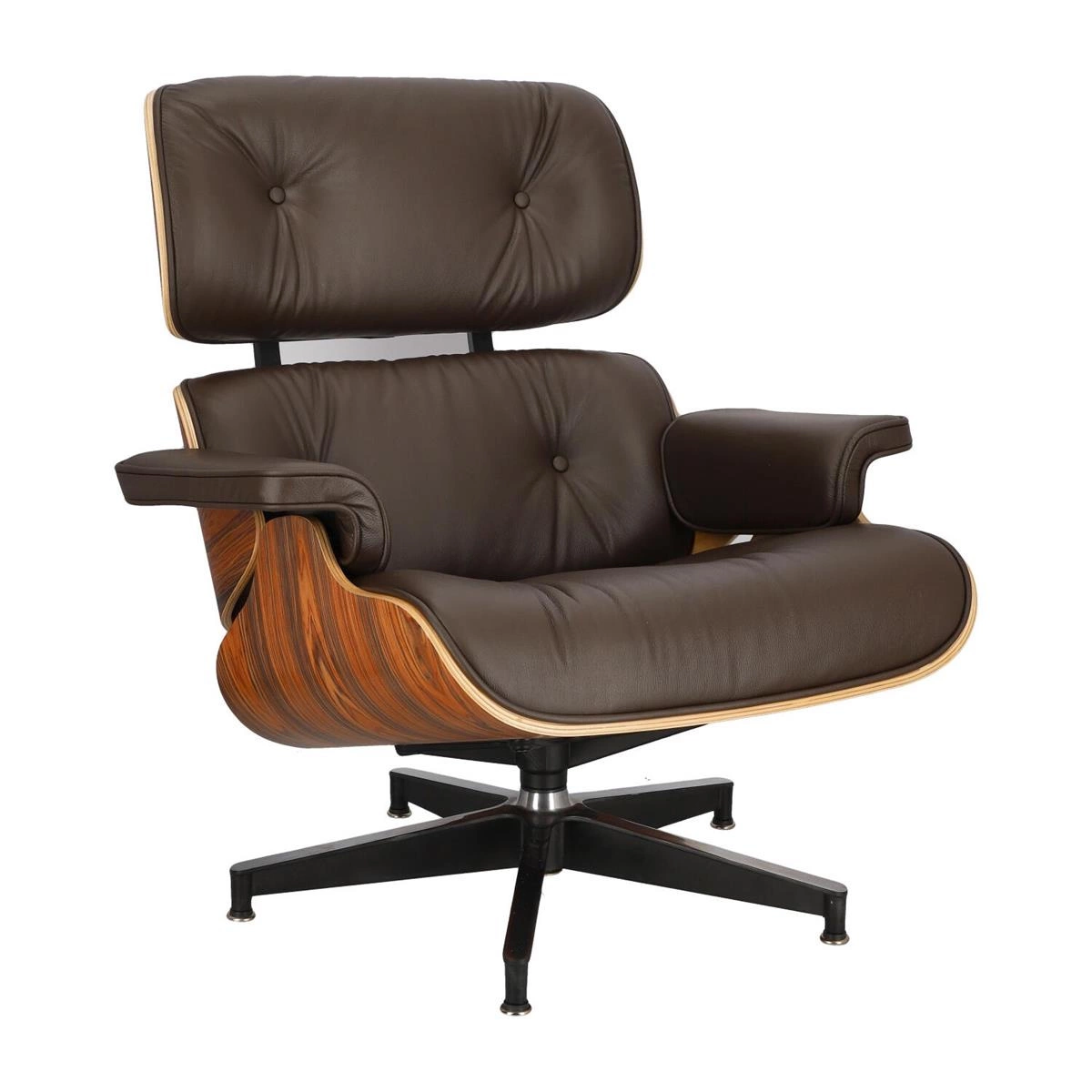 Fotel Vip to ponadczasowy projekt łączący wygodę i elegancki design. Trzy główne elementy fotela wykonane są z wytrzymałej i elastycznej sklejki w kolorze drzewa różanego. Bazę stanowią elementy z polerowanego aluminium w kolorze czarnym. Jest to materiał, który nie tylko wygląda elegancko, ale także jest wyjątkowo wytrzymały i odporny na uszkodzenia. Fotel Vip posiada podstawę w formie pięcioramiennej gwiazdy, która zapewnia jego wyjątkową stabilność. Istotnym atutem fotela Vip jest jego niesamowicie komfortowe siedzisko. Miękkie, z wysokim, odpowiednio wyprofilowanym oparciem jest świetnym miejscem do odpoczynku. Ważny element stanowią także optymalnie umiejscowione podłokietniki. Fotel Vip tapicerowany jest wysokiej jakości skórą naturalną w kolorze brązowym. Zastosowanie tego rodzaju materiału pozwala na łatwiejsze utrzymanie fotela w czystości, a dodatkowo dodaje szyku i elegancji.