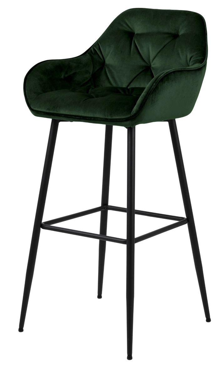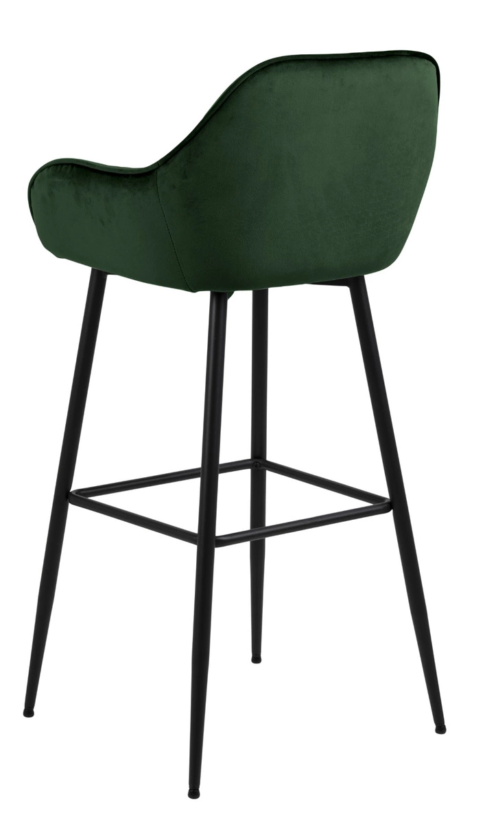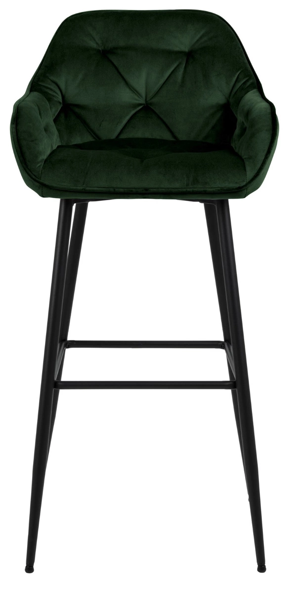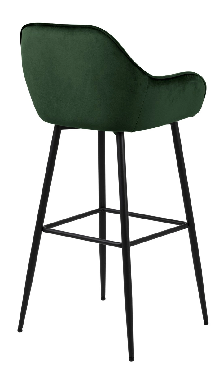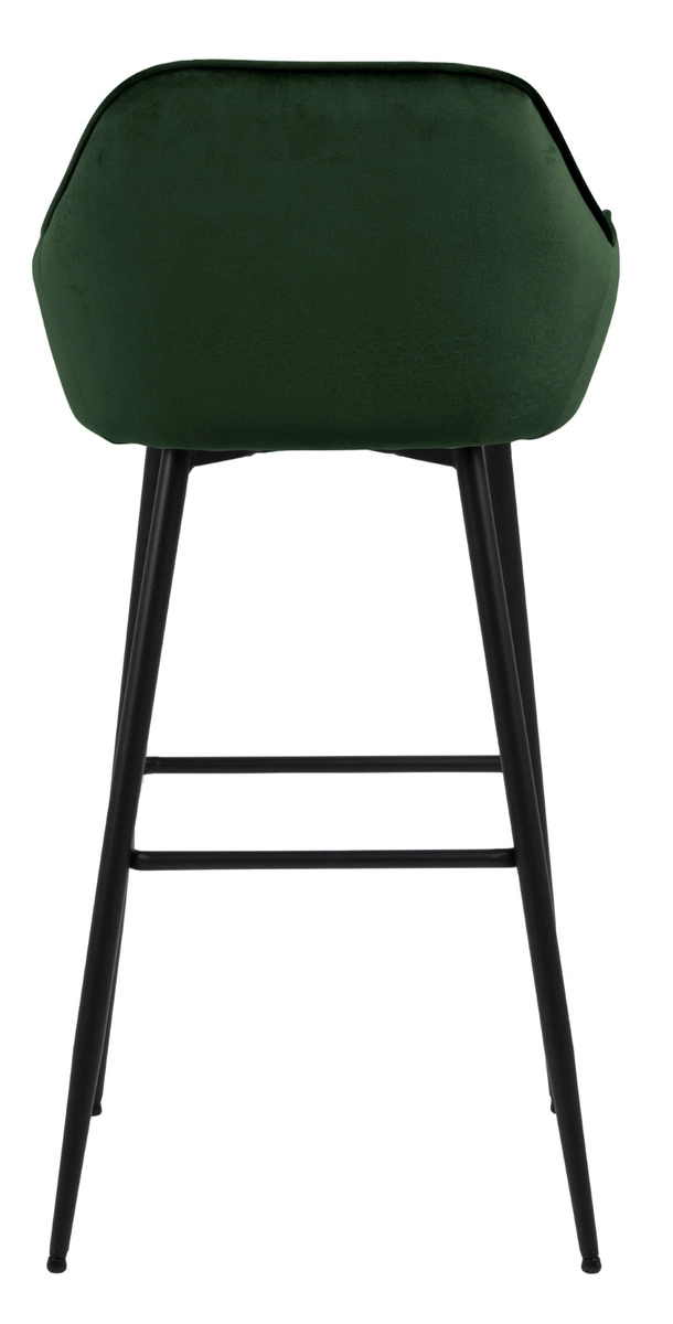 Krzesło barowe Brooke to kwintesencja stylu modern glamour. Modna welwetowa tkanina w połączeniu z wytrzymałą metalową podstawą krzesła wpisze się w nowoczesny wystrój wnętrza. Stołek barowy komfort zawdzięcza miękkiej piance tapicerskiej, która gwarantuje miękkość oparcia oraz siedziska. Welurowa tkanina VIC fabric forest green 68AC o nietypowym koralowym kolorze sprawdzi się w nowoczesnej jadalni lub przy wyspie kuchennej. Wysokość oparcia 26 cm Szerokość siedzenia 37.5 cm Głębokość siedzenia 37.5 cm Wymiary opakowania: 67x42x82 cm Waga: 8 kg