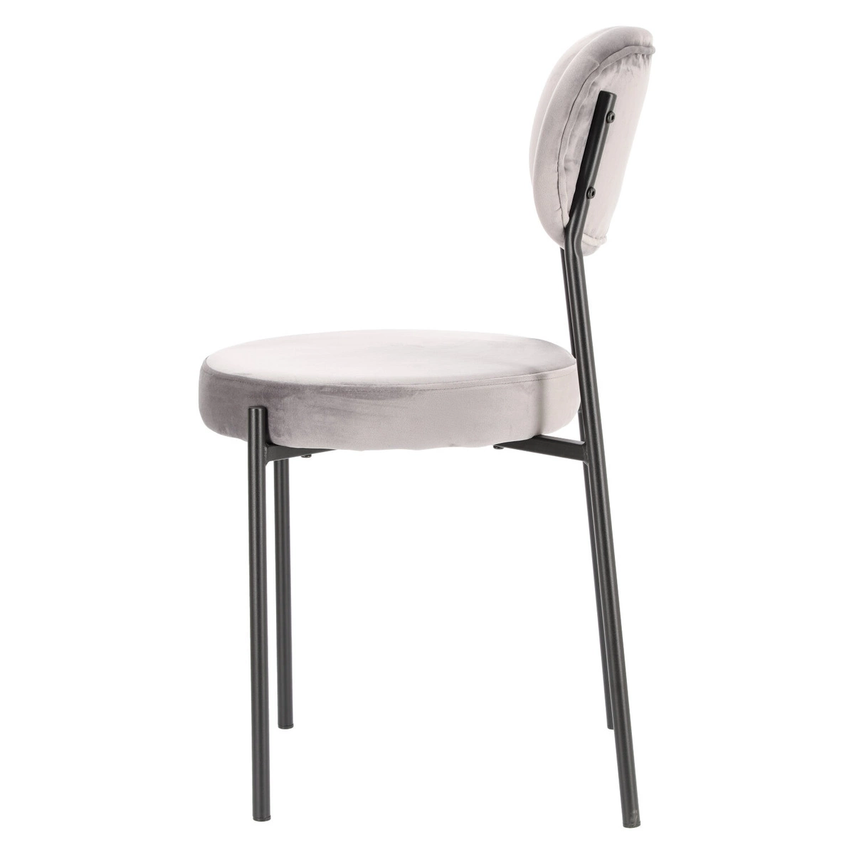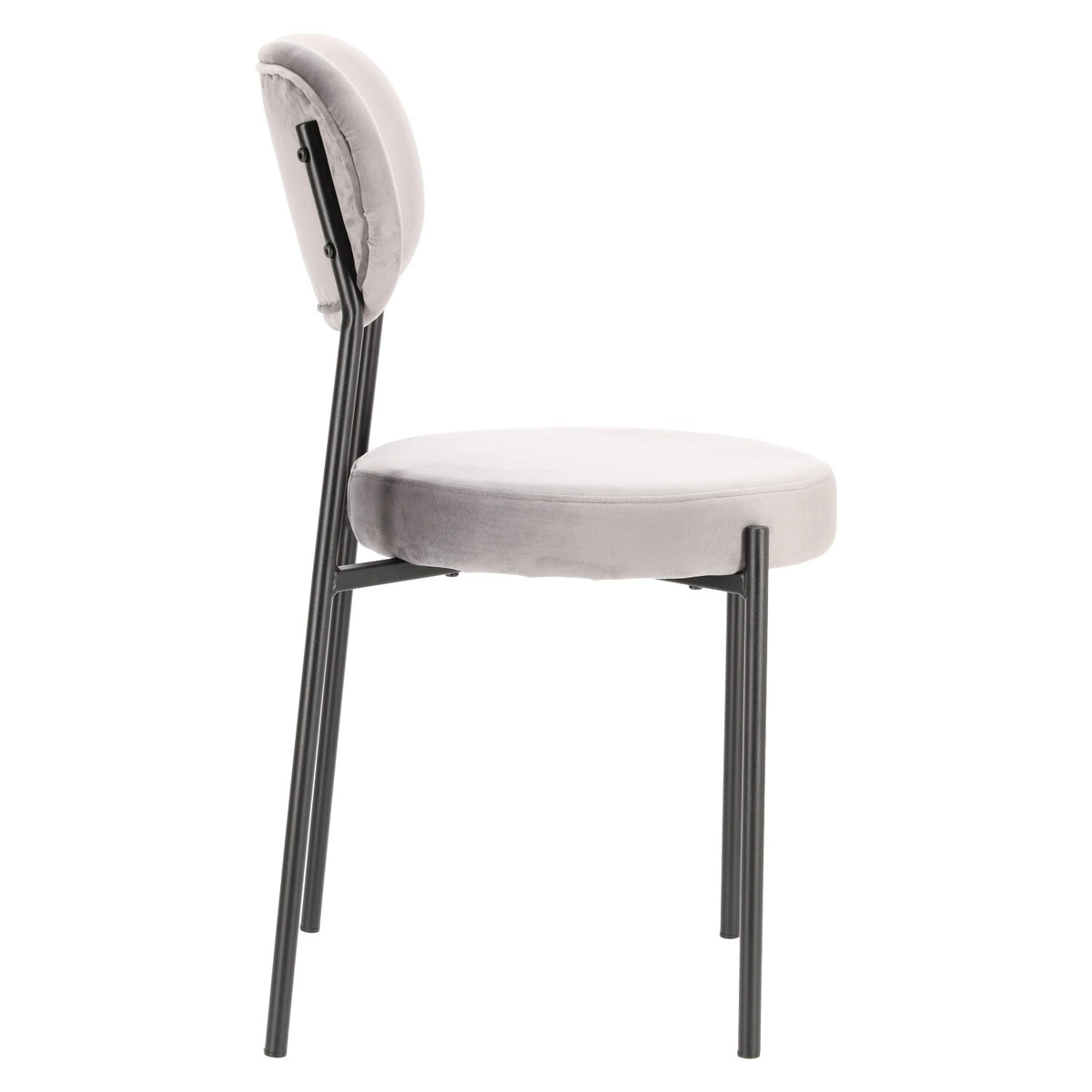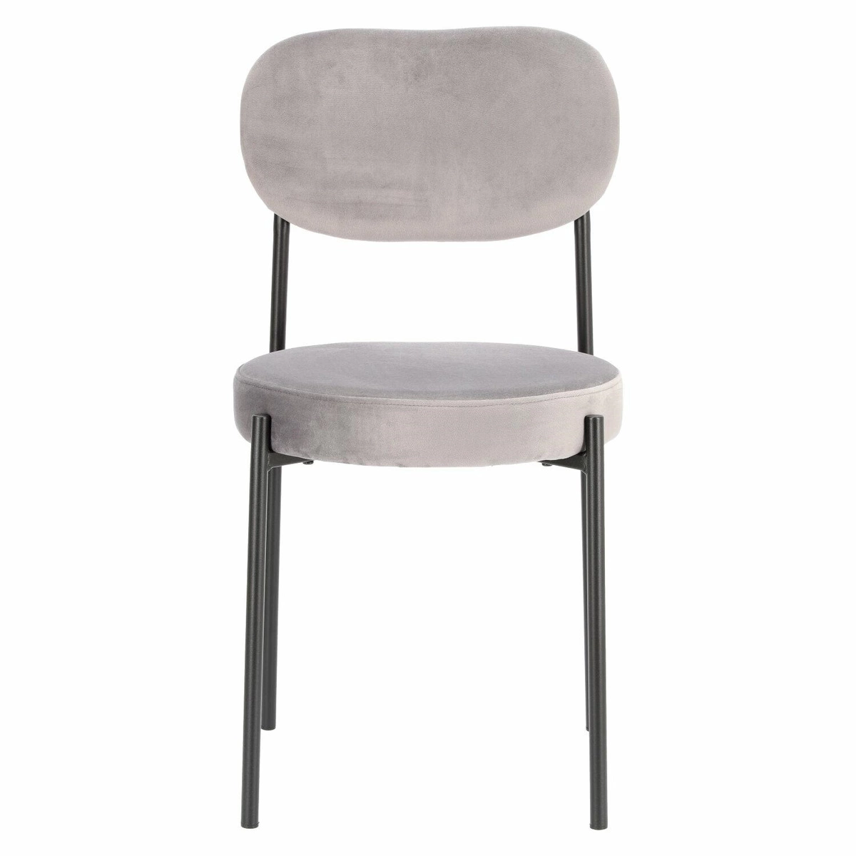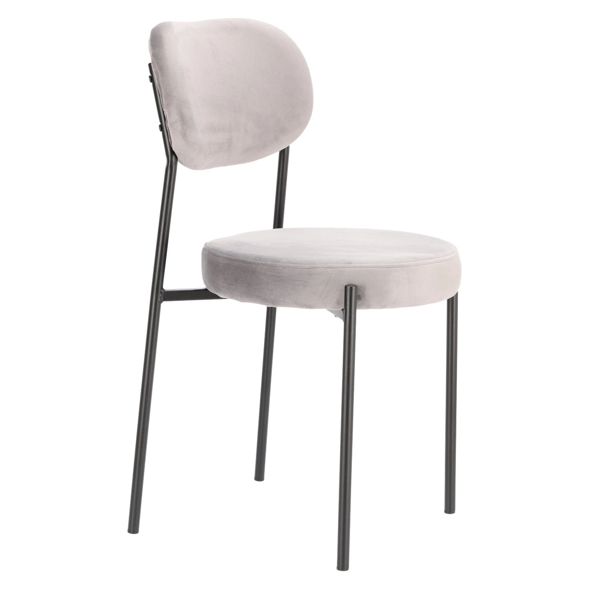 Krzesło Camile w tkaninie velvet o niezwykle ciekawym designie świetnie sprawdzi się w niedużym salonie lub jadalni. Okrągłe siedzisko wraz z wyprofilowanym oparciem nadaje temu modelowi futurystycznego wyglądu, ale także pozwala na komfort podczas siedzenia przez dłuższy czas. Miękkie siedzisko wypełnione zostało gąbką oraz pokryte tkaniną przypominającą welur, która jest niezwykle miękka w dotyku. Wyprofilowane oparcie to połączenie giętej sklejki i gąbki obite również welurową miękką tkaniną. Siedzisko krzesła spoczywa na metalowym krzyżaku, który łączy ze sobą metalowe, malowane proszkowo nogi. Smukłe nogi zapewnią konstrukcji odpowiednią stabilność, ale także nadadzą jej wizualnej lekkości. Tapicerowane krzesło na czarnych nogach to uniwersalny i ponadczasowy design. Krzesło Camile dostępne jest w trzech różnych kolorach tkanin. Głębokość siedziska: 42,5 cm Szerokość siedziska: 42,5 cm Wymiary oparcia: 43 x 27 cm Rozstaw nóg przód: 38cm Rozstaw nóg tył: 39cm