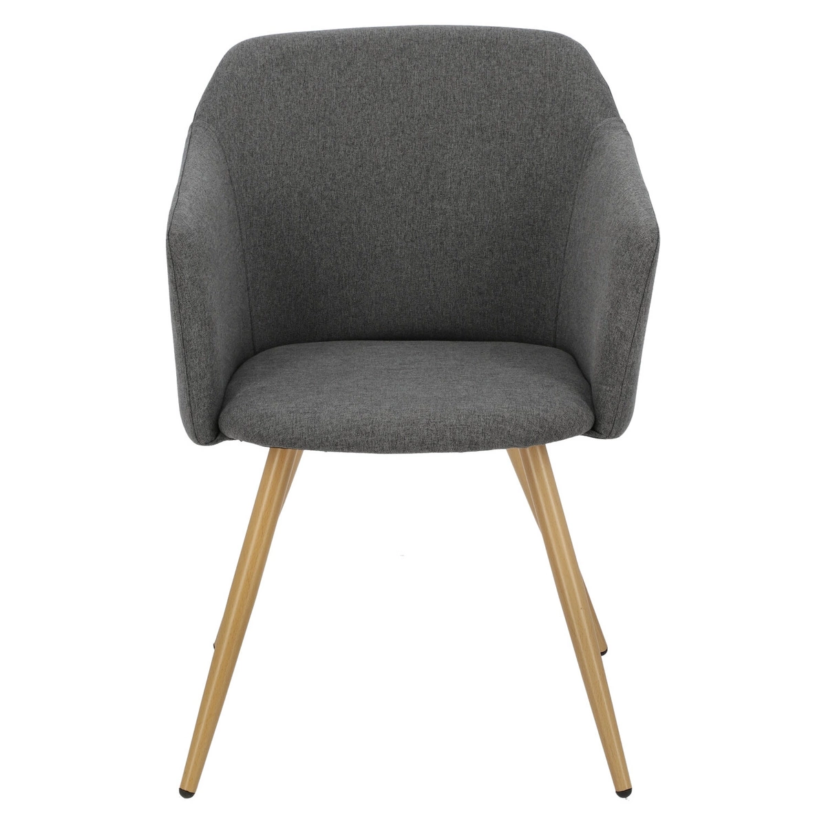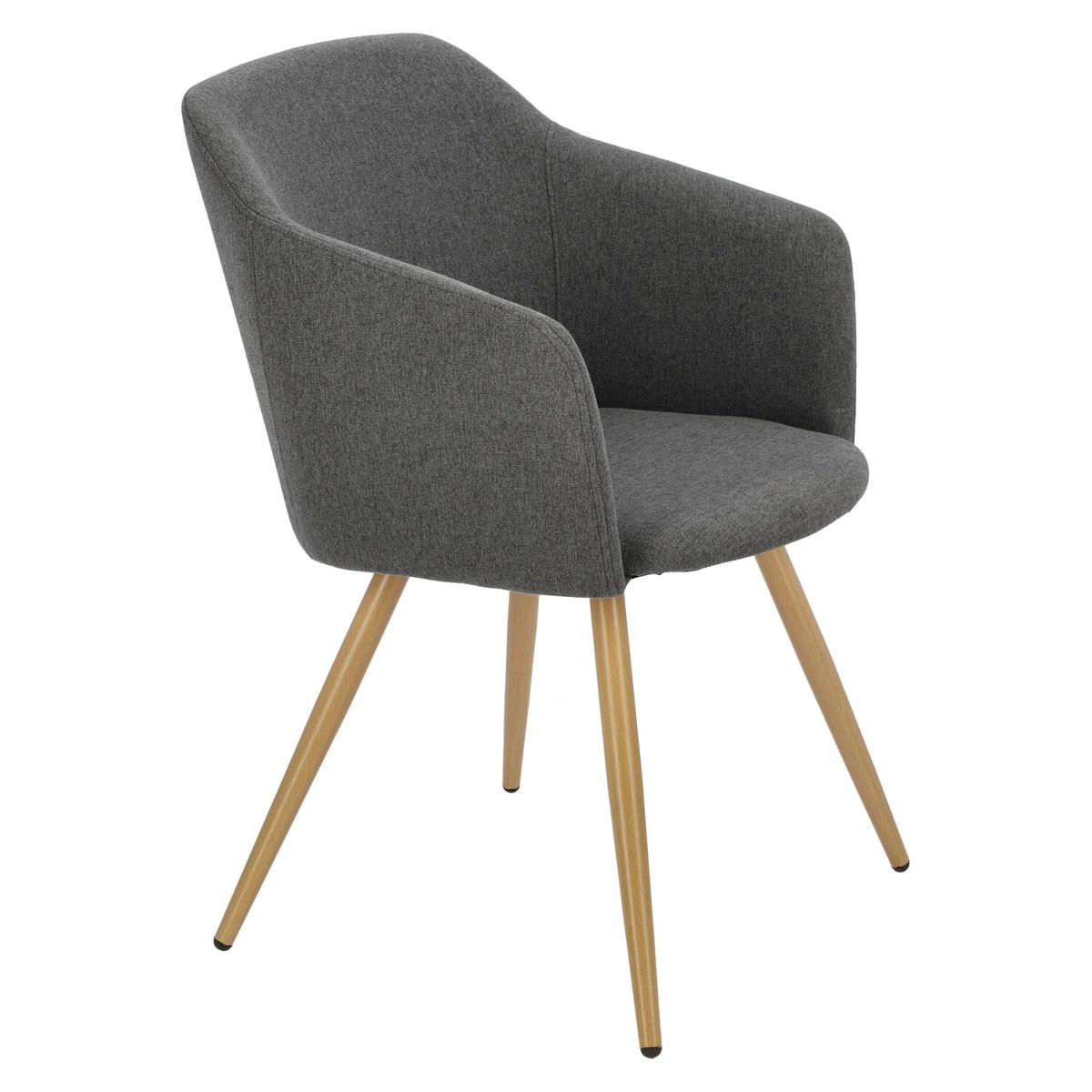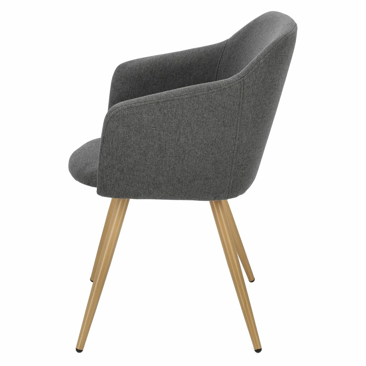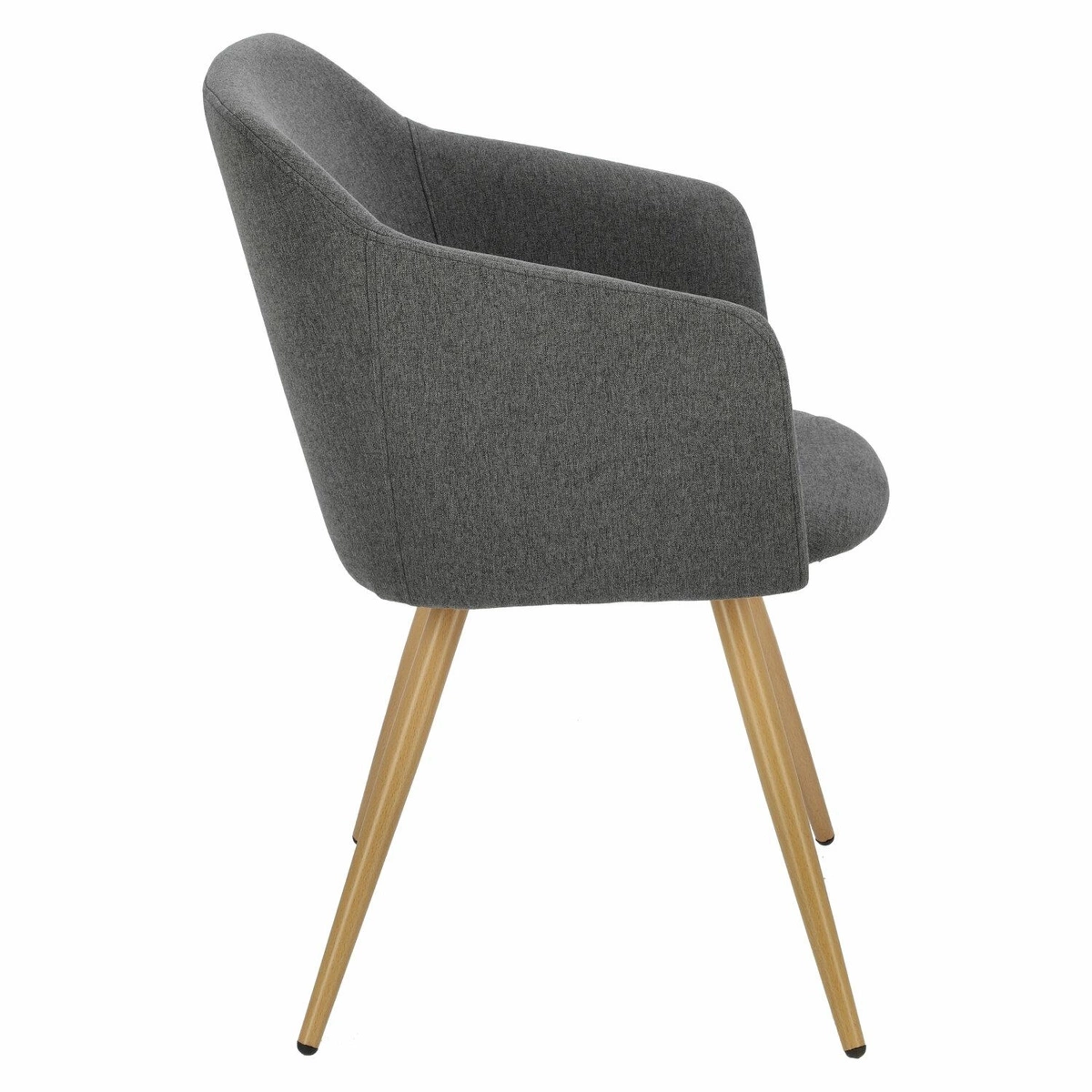 Eleganckie krzesło Molto wykonane zostało z wytrzymałej antracytowej tkaniny oraz metalowych nóg w okleinie imitującej drewno. Siedzisko w kolorze szarym doskonale komponuje się z podstawą w kolorze naturalnym. Metalowe nogi mają wykończenie w połysku, są łatwe w czyszczeniu i odporne na zabrudzenia, Ergonomiczny kształt oparcia uzyskany został dzięki wytrzymałej, giętej sklejce. Podłokietniki o odpowiedniej wysokości potęgują komfort siedzenia. Stonowana kolorystyka i prosta forma sprawiają, że krzesło doskonale odnajduje się we wnętrzach urządzonych w stylu skandynawskim, jak też minimalistycznym czy nowoczesnym. Molto z powodzeniem sprawdza się także jako wygodny fotel do biurka. Wnieś do swojego wnętrza nastrojowy klimat, harmonizując go z ciepłem naturalnych barw! Wysokość siedziska: 46 cm Szerokość siedziska: 42 cm Wysokość podłokietników: 70 cm Głębokość siedziska: 46 cm Grubość nóg: 3,5 cm Waga: 6kgPodmiot odpowiedzialny za ten produkt na terenie UE