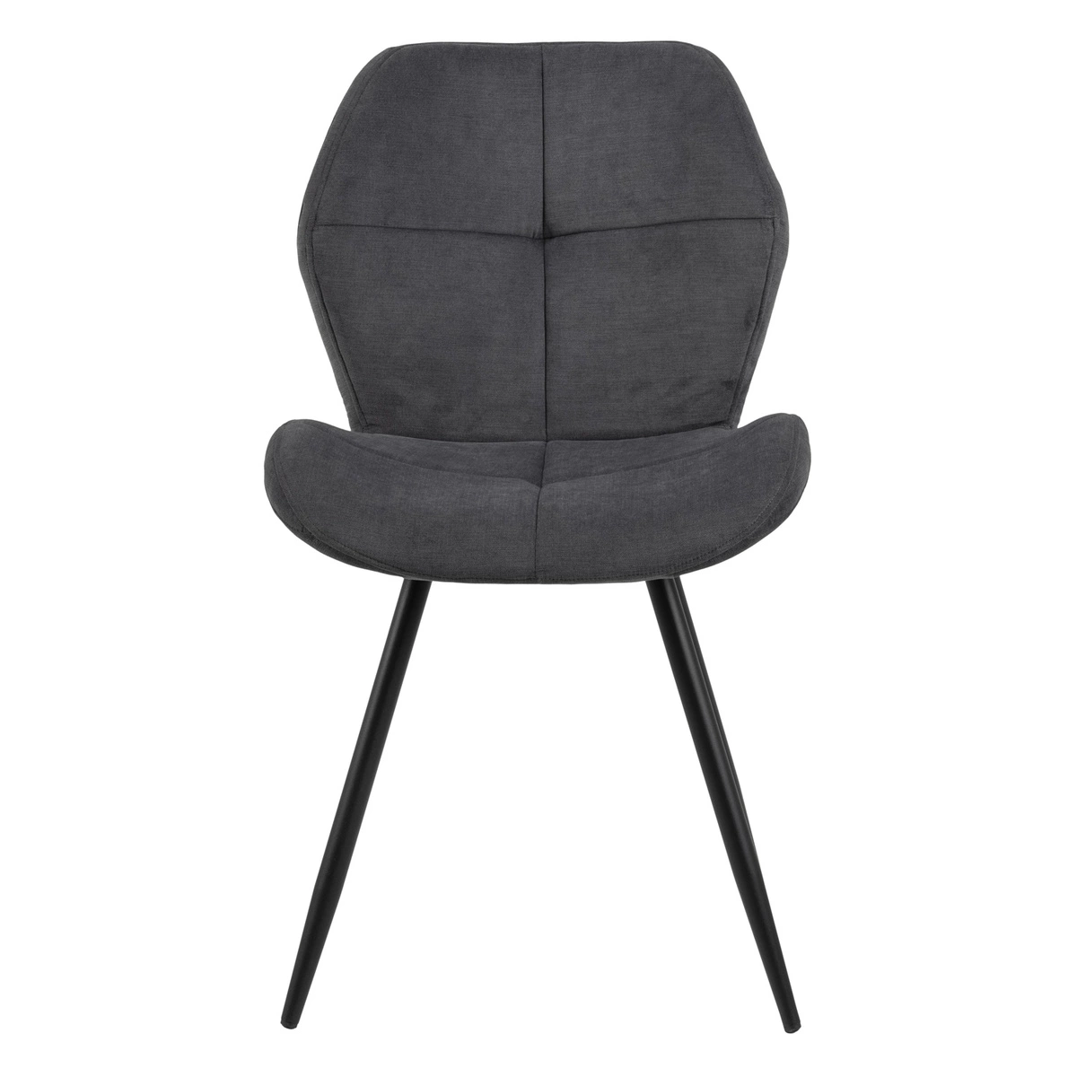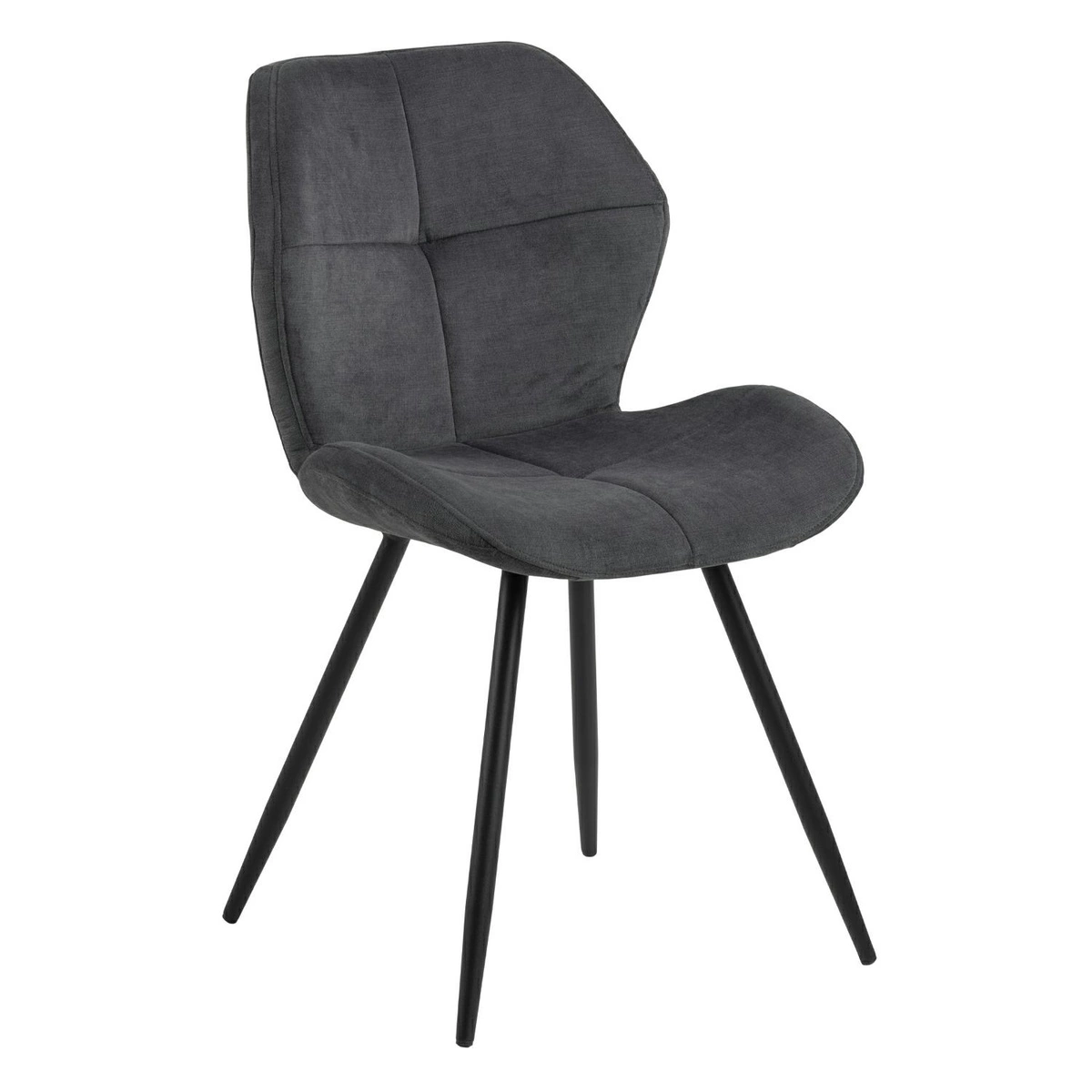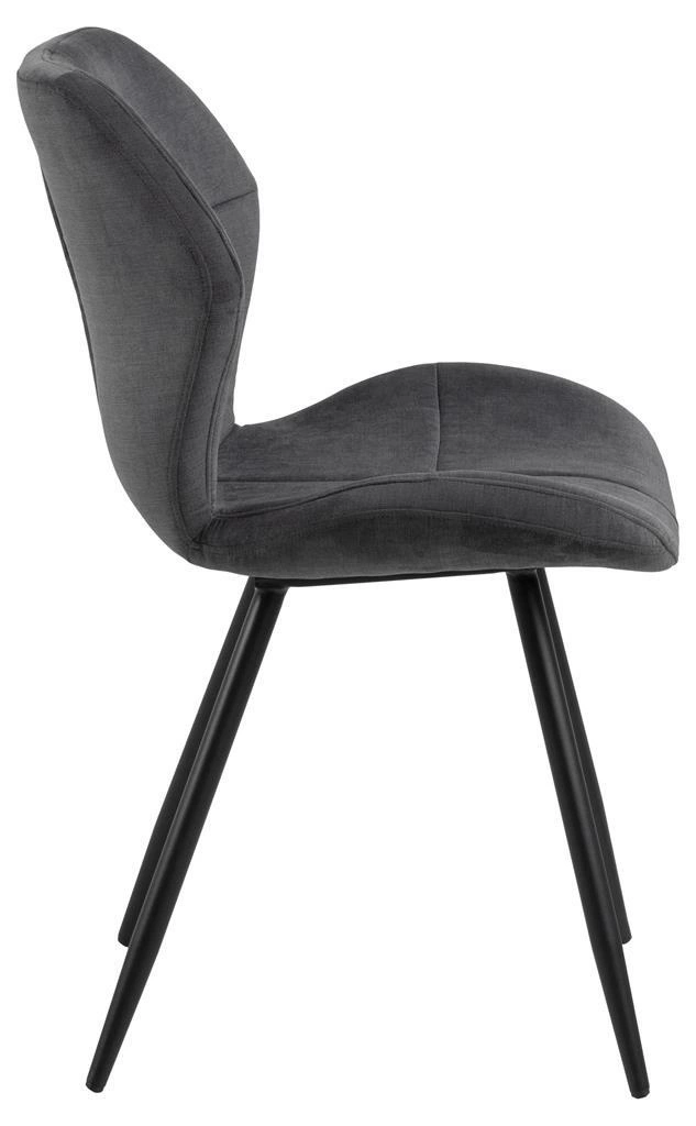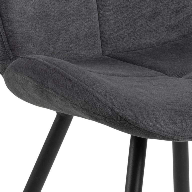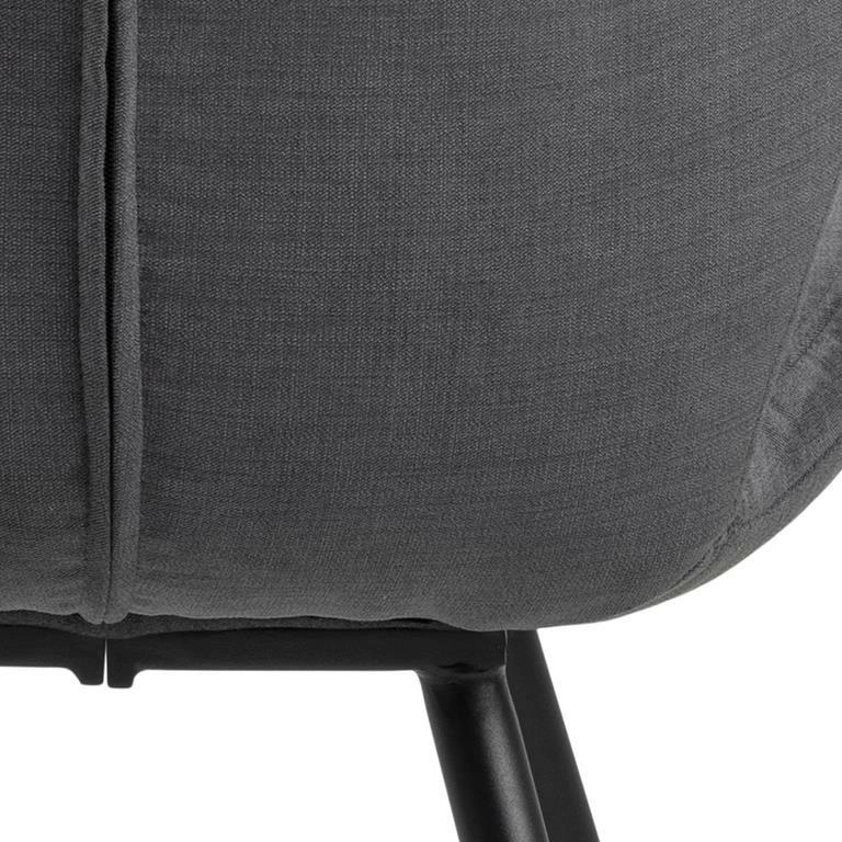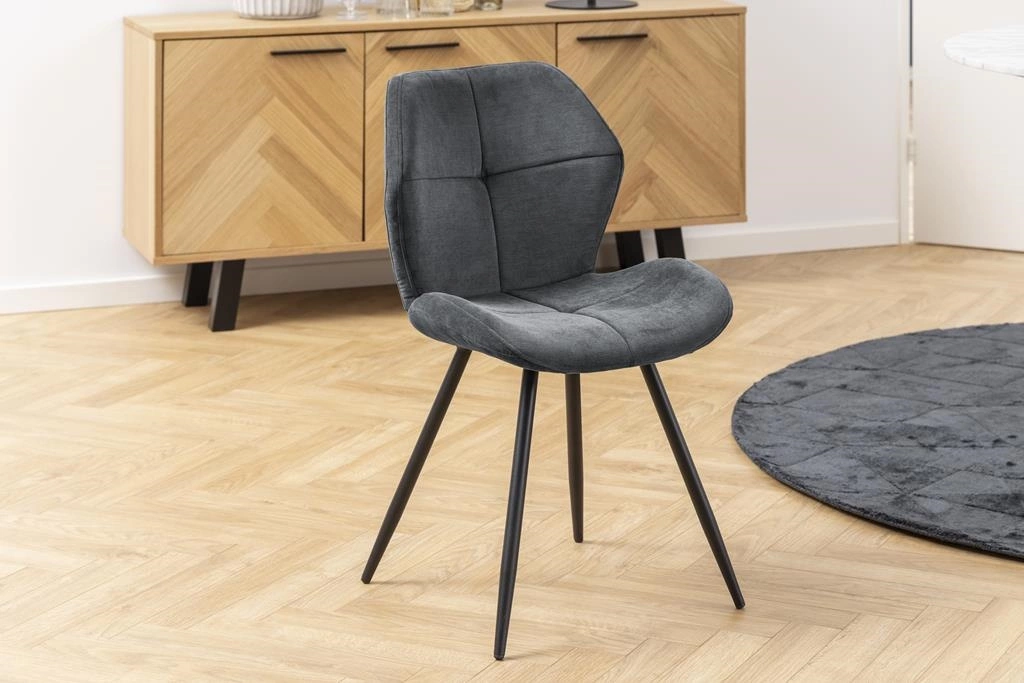 Krzesło Petri to projekt o nowoczesnym designie idealny dla osób ceniących nietypowe wzornictwo. Siedzisko i oparcie krzesła z pianki poliuretanowej tapicerowane jest tkaniną Holly fabric anthracite 28. Uwaga zwraca ciekawy, nieco ścięy kształt oparcia oraz dekoracyjne przeszycia i pikowanie. Podstawę krzesła stanowią cztery smukłe, delikatnie rozchodzące się na boki nogi z malowanego proszkowo metalu w kolorze czarnym. Krzesło Petri to propozycja idealna do domowej jadalni oraz przestrzeni komercyjnych tj. restauracje. Ilość kartonów: 1 Wymiary kartonów: 68x48x43cm Waga kartonów: 7,4kg