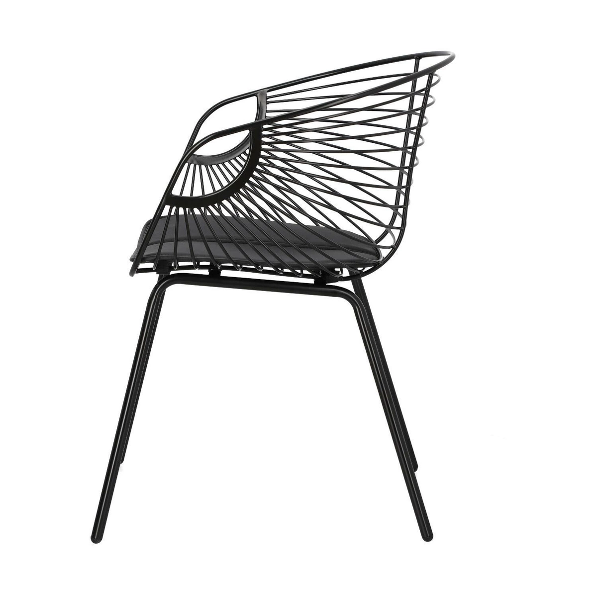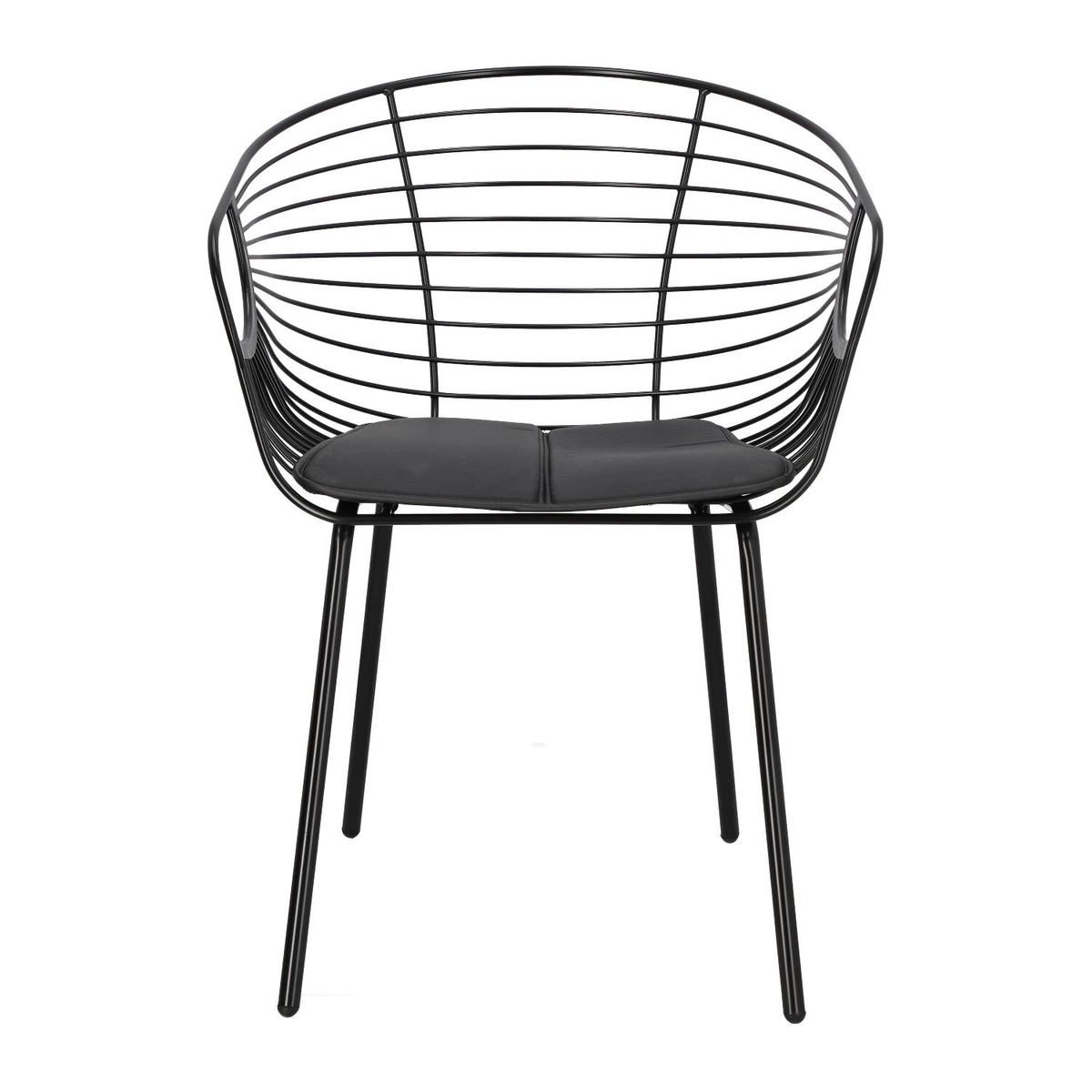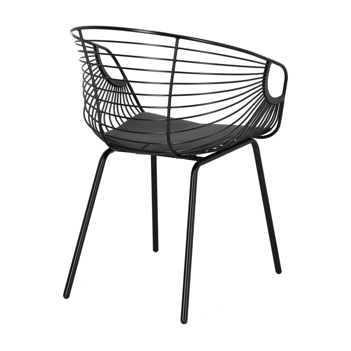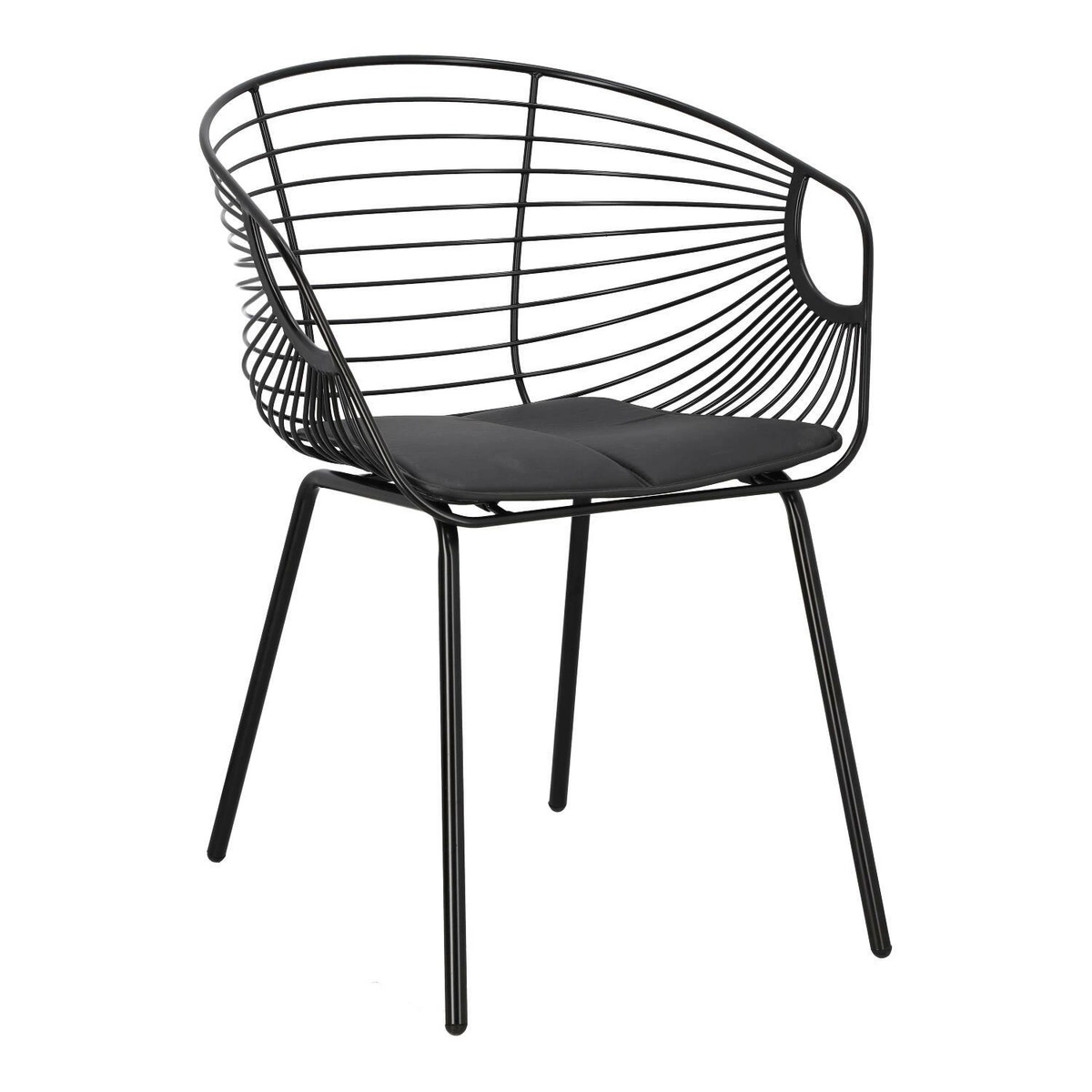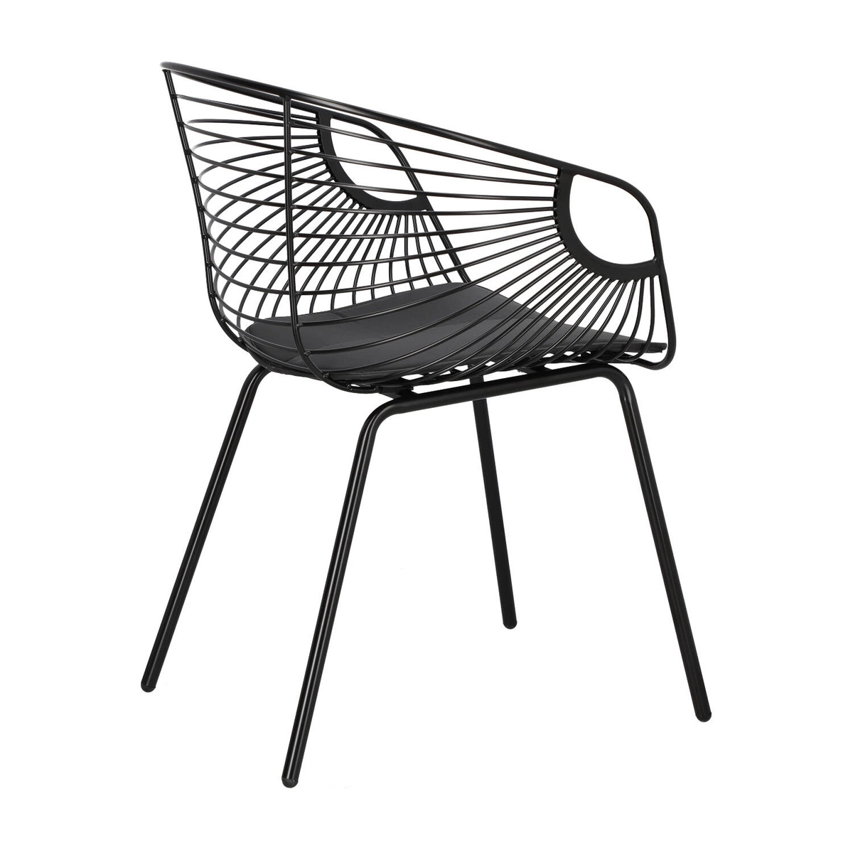 Metalowe krzesło Sligo to nowoczesne krzesło do wnętrza w stylu loft lub industrialnego. Krzesło o siedzisku w kształcie kosza będzie idealnym meblem do jadalni lub kuchni. Krzesło z podłokietnikami jest nie tylko wygodne ale również charakteryzuje sie ciekawym kształtem. Dzięki użyciu malowanego proszkowo metalu, krzesło odporne jest na uszkodzenia mechaniczne. Siedzisko krzesła zostało wyposażone w poduszkę z eko skóry. Głęboość siedziska: 42 cm Szerokość siedziska: 44 cm