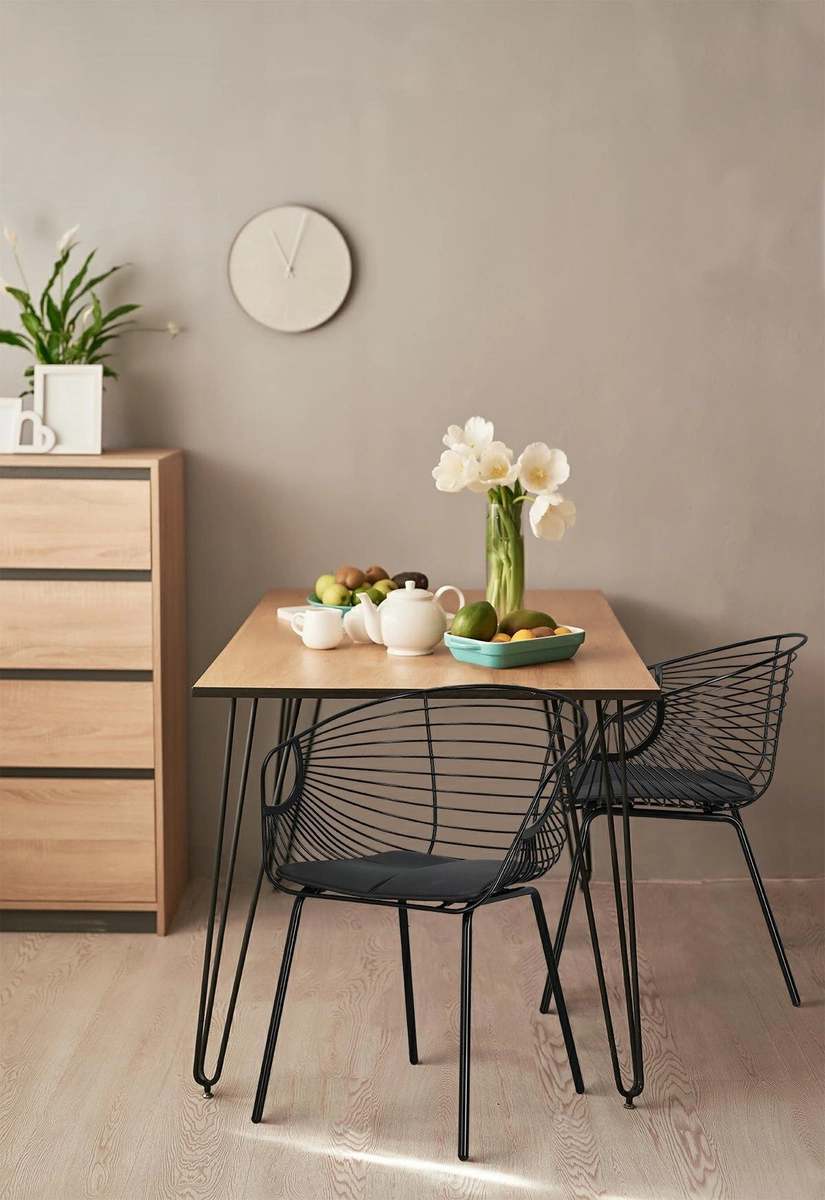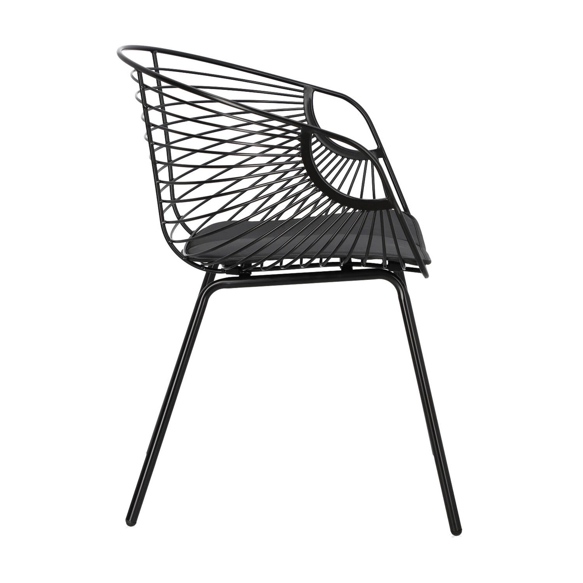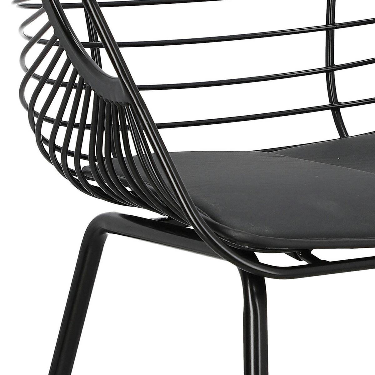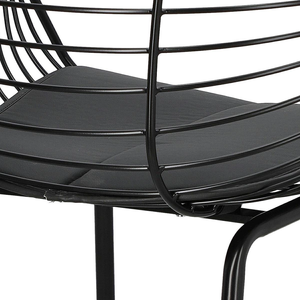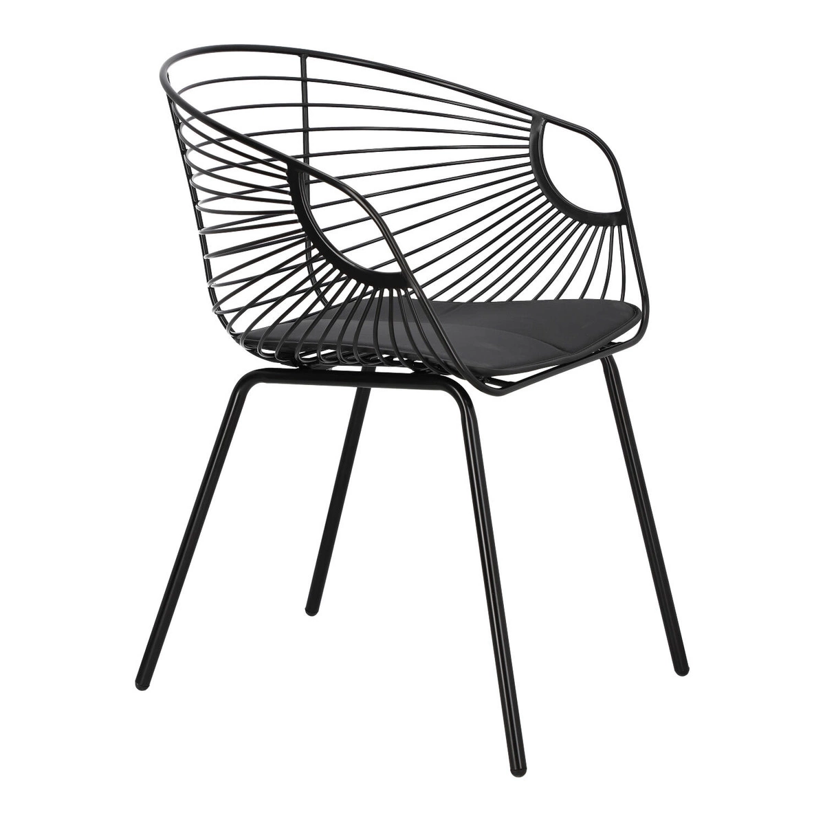 Metalowe krzesło Sligo to nowoczesne krzesło do wnętrza w stylu loft lub industrialnego. Krzesło o siedzisku w kształcie kosza będzie idealnym meblem do jadalni lub kuchni. Krzesło z podłokietnikami jest nie tylko wygodne ale również charakteryzuje sie ciekawym kształtem. Dzięki użyciu malowanego proszkowo metalu, krzesło odporne jest na uszkodzenia mechaniczne. Siedzisko krzesła zostało wyposażone w poduszkę z eko skóry. Głęboość siedziska: 42 cm Szerokość siedziska: 44 cm
