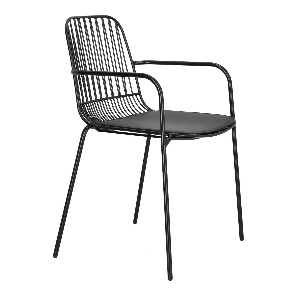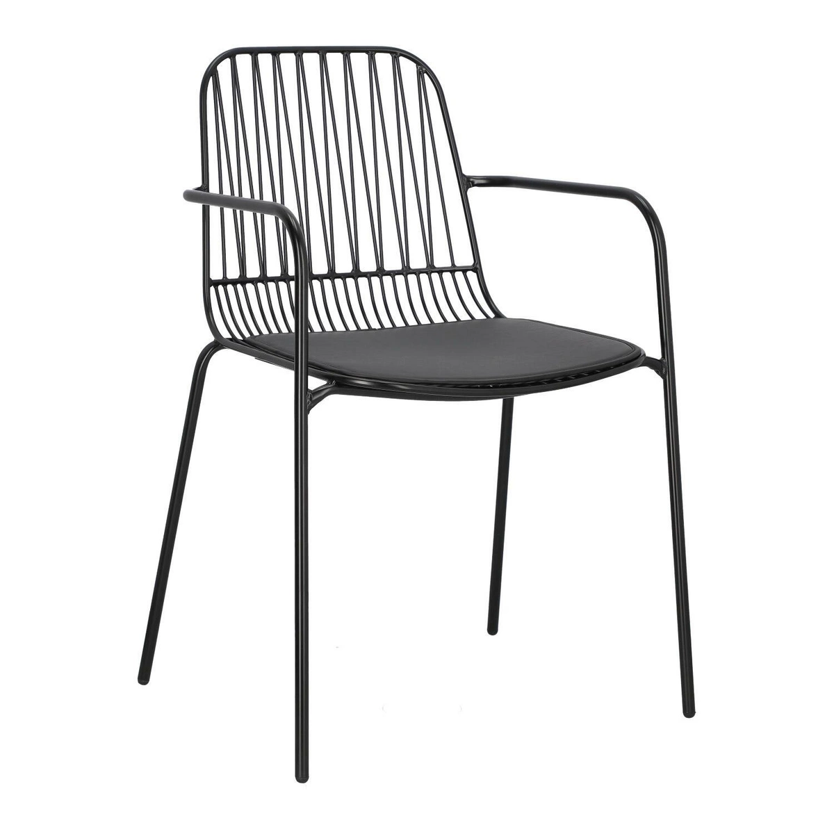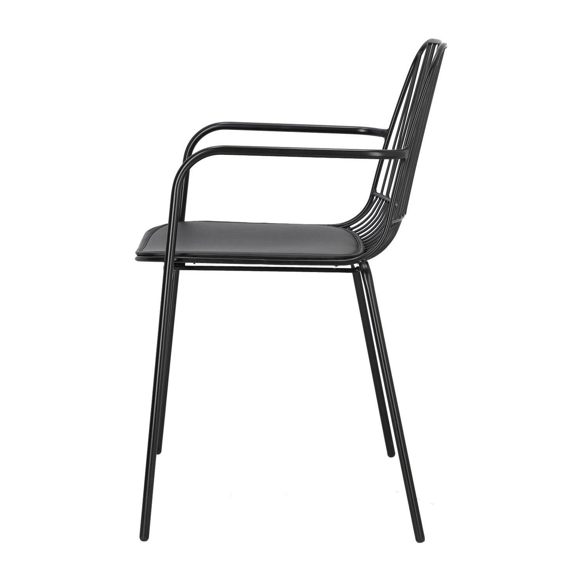 Czarne metalowe krzesło Willy z podłokietnikami to industrialny mebel, który zachwyli swoim designem. Krzesła Willy zostały pomalowane proszkowo na czarno. Półmatowe wykończenie krzeseł dodaje im klasycznego i stonowanego wyglądu. Krzesło zostało wyprodukowane z precyzyjnie połączonych ze sobą metalowych wsporników. Siedzisko krzesła wyposażone jest w miękką poduszkę z pianki tapicerskiej, która obszyta została eko skórą. Nogi krzesła zostały zabezpieczone stopkami z tworzywa, które zapobiegają rysowaniu się podłogi. Szerokość siedziska; 44,5 cm Głębokość siedziska: 45 cm Waga krzesła: 6 kg Wymiary opakowania: 67x91x58 cm Max. 4szt. w kartonie