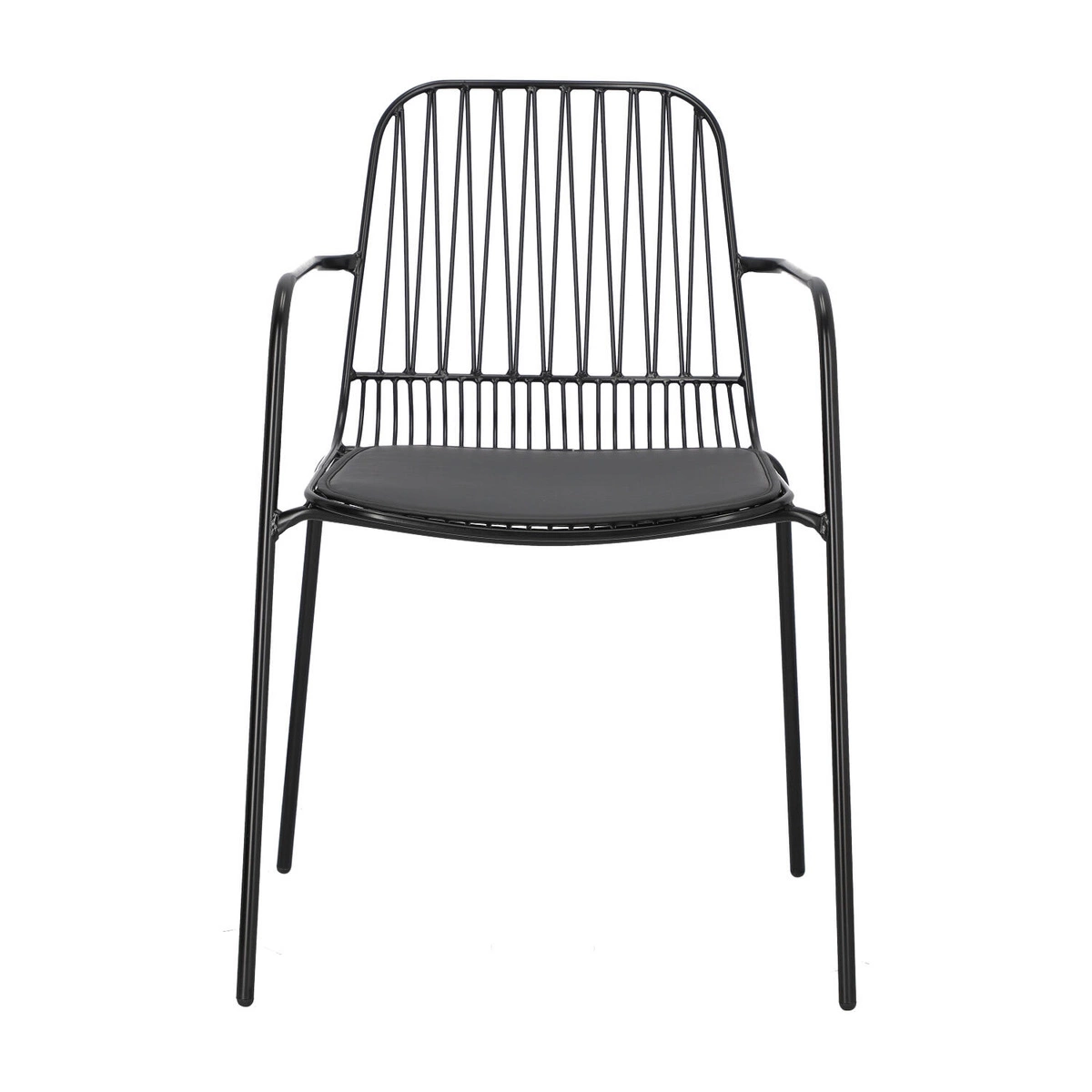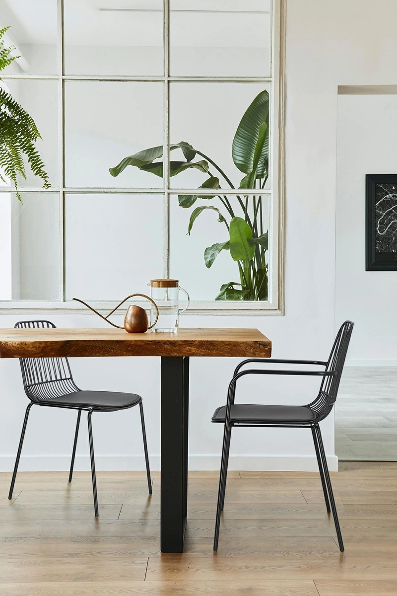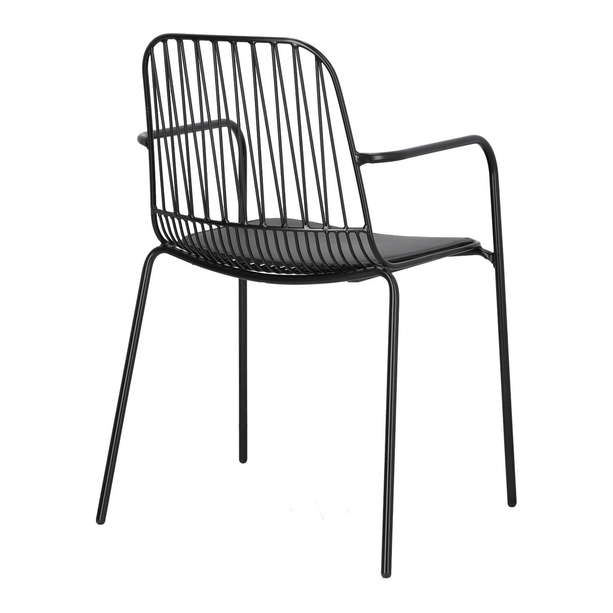 Czarne metalowe krzesło Willy z podłokietnikami to industrialny mebel, który zachwyli swoim designem. Krzesła Willy zostały pomalowane proszkowo na czarno. Półmatowe wykończenie krzeseł dodaje im klasycznego i stonowanego wyglądu. Krzesło zostało wyprodukowane z precyzyjnie połączonych ze sobą metalowych wsporników. Siedzisko krzesła wyposażone jest w miękką poduszkę z pianki tapicerskiej, która obszyta została eko skórą. Nogi krzesła zostały zabezpieczone stopkami z tworzywa, które zapobiegają rysowaniu się podłogi. Szerokość siedziska; 44,5 cm Głębokość siedziska: 45 cm Waga krzesła: 6 kg Wymiary opakowania: 67x91x58 cm Max. 4szt. w kartonie