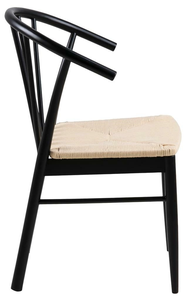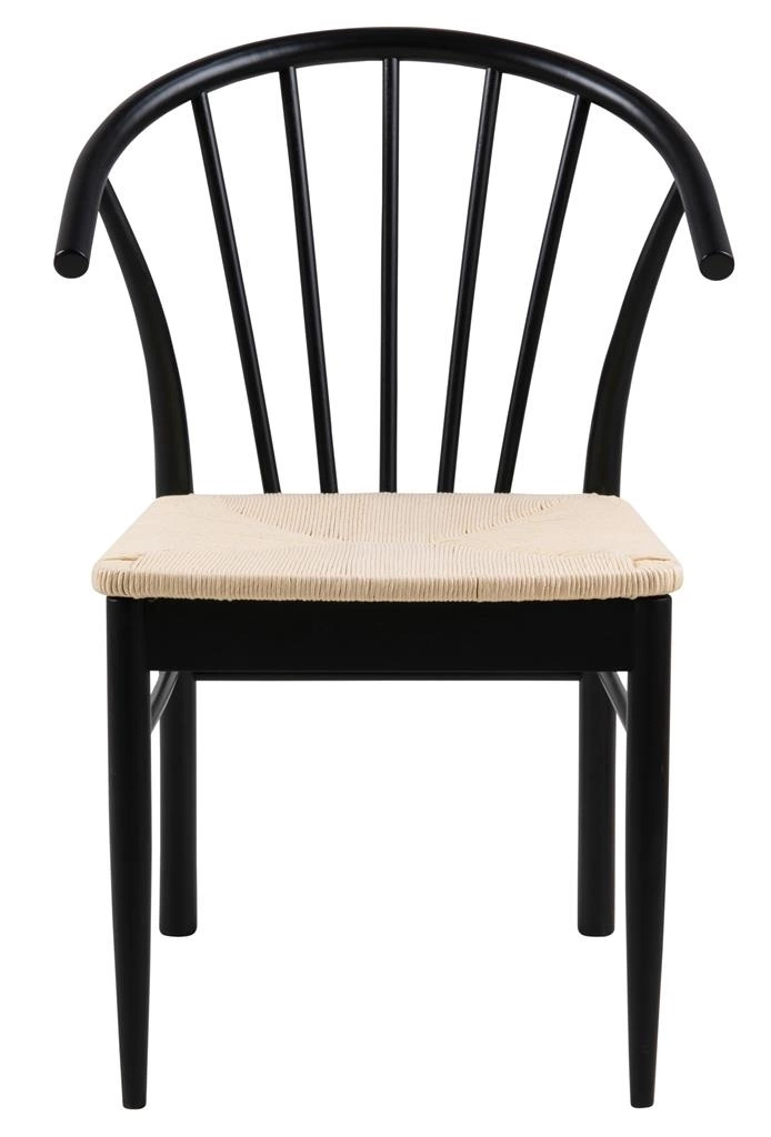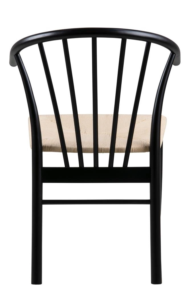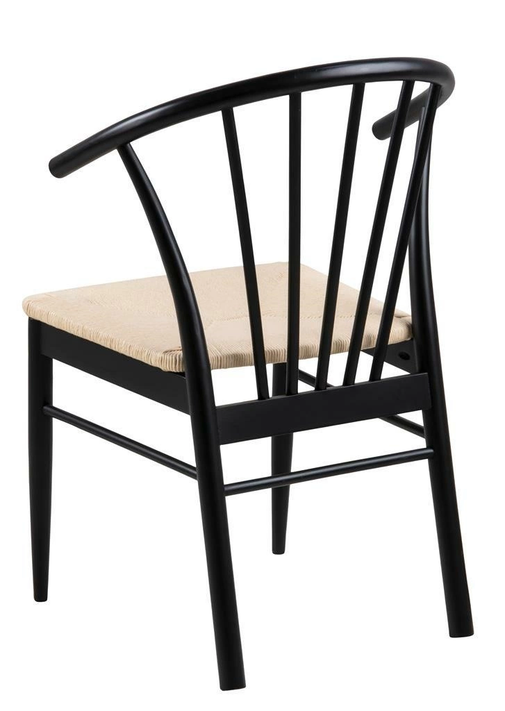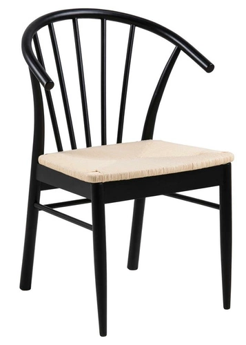 Krzesło z podłokietnikami Cassandra to mebel idealnie pasującyc do wnętrz w stylu boho czy skandynawskim. Posiada wygodne, ergonomiczne podłokietniki oraz szerokie siedzisko. Jest ono wykonane z papierowej plecionki, która nie tylko ciekawie i estetycznie wygląda, ale także jest bardzo trwała. Pozostałe elementy krzesła to drewno w kolorze czarnym. Podstawę krzesła stanowią cztery nogi, z których przednie zwężają się ku dołowi. Tylnie, nieco szersze, płynnie przechodzą w oparcie. Zapewnia ono odpowiednie podparcie dla pleców i złożone jest z siedmiu pionowych elementów ułożonych w kształt wachlarza. Ilość kartonów: 1 Wymiary kartonów: 57,5x74,5x94cm Waga kartonów: 8,4kg