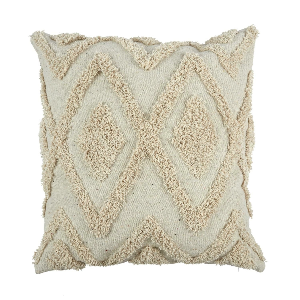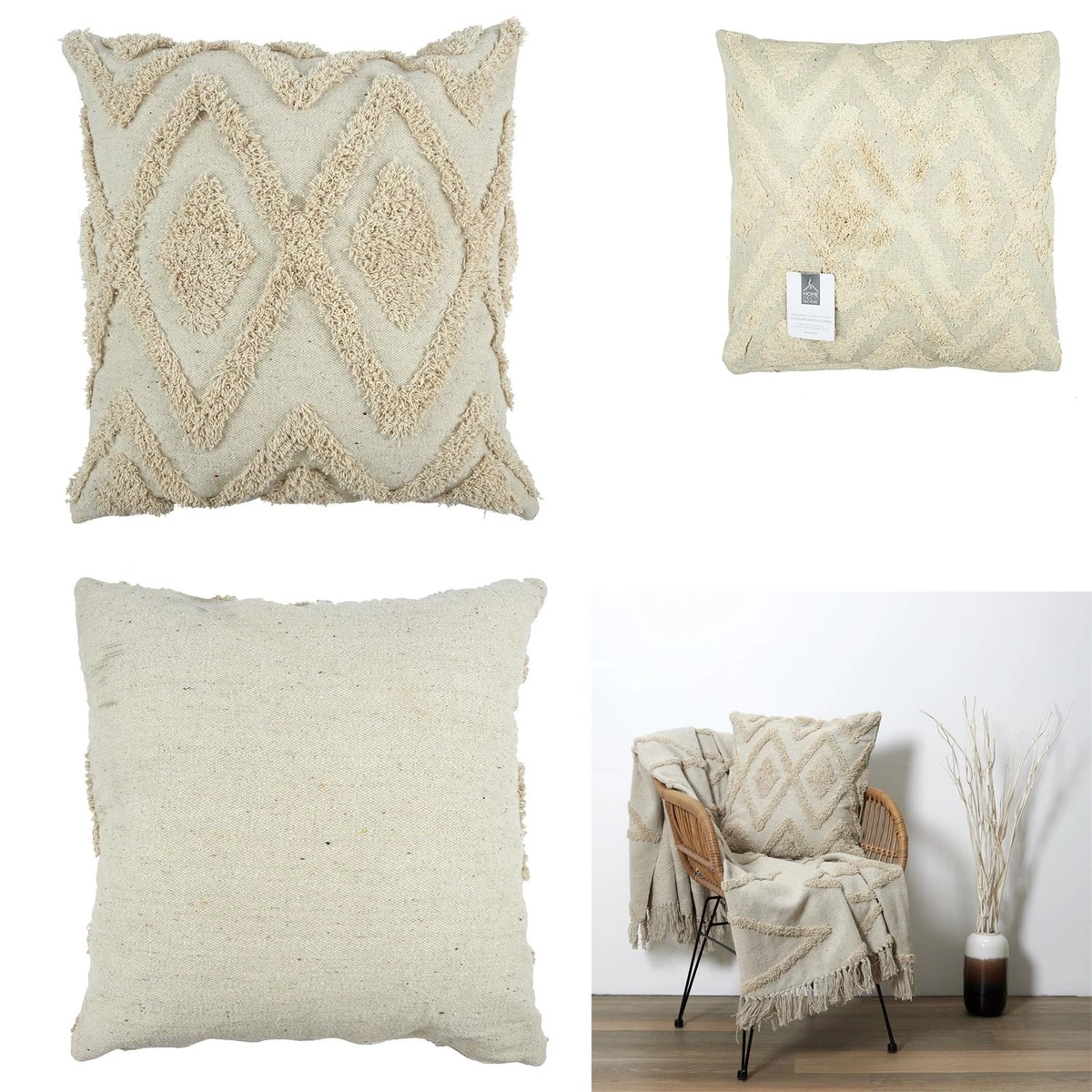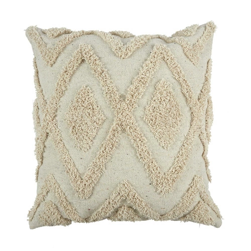 Poduszka o wymiarach 40x40 cm o ciekawym wyplocie będzie ozdobą salonu w naturalnym stylu boho lub skandynawskim. Poduszka o ozdobnym przodzie i gładkim bawełnianym tyle doda uroku kanapie lub fotelowi. Miękka i miła w dotyku poduszka ciekawie komponuje się z pledem o tej samej strukturze.