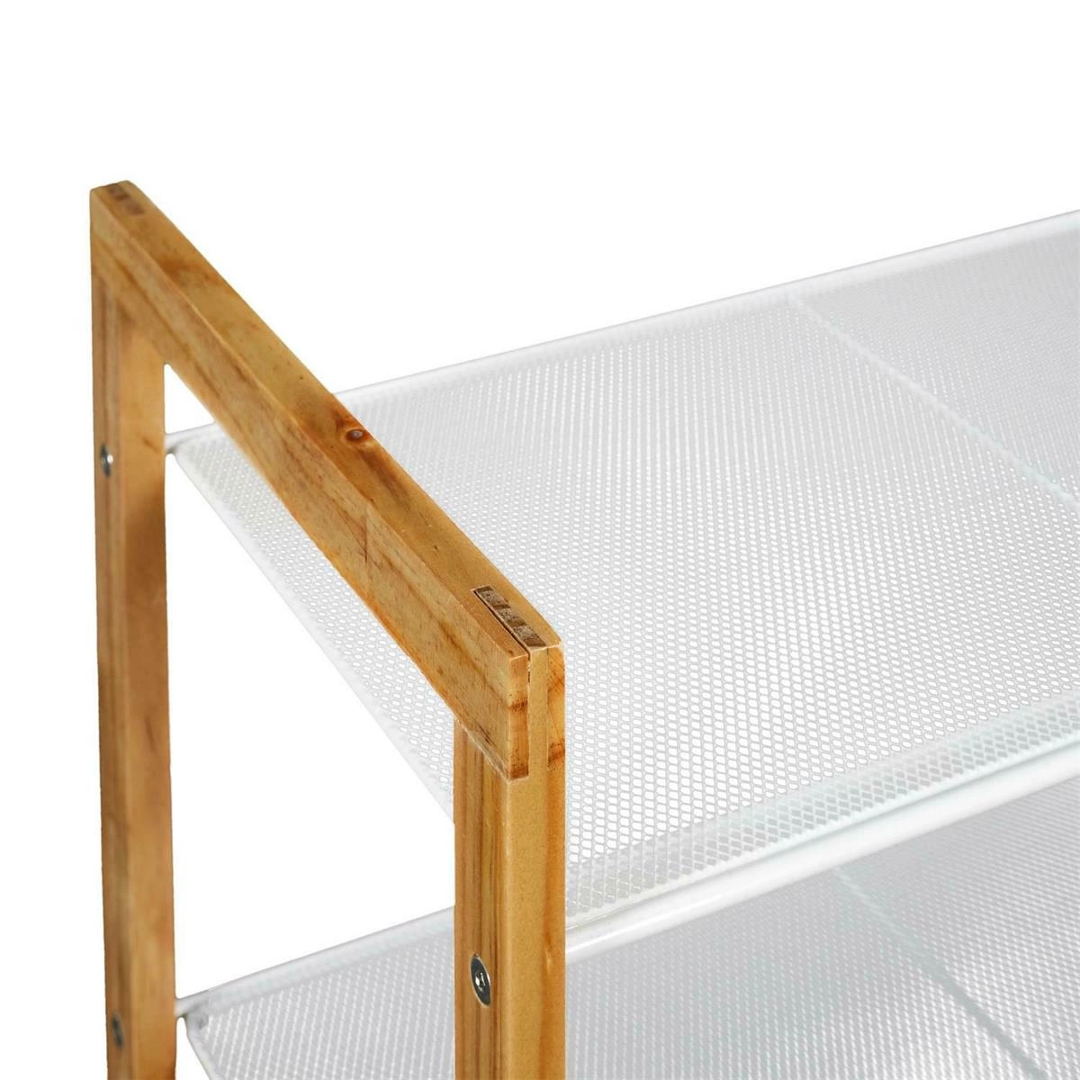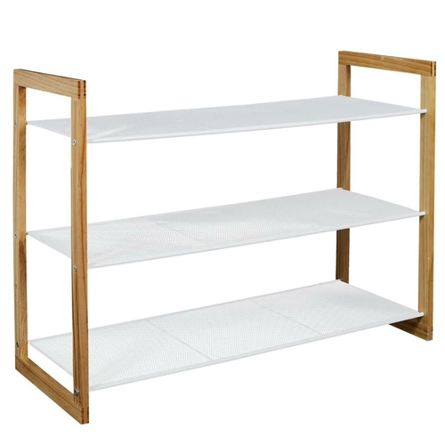 Sosnowy regał Rolis o metalowych ażurowych półkach sprawdzi się w każdym domu, gdzie nadmiar butów spędza sen z powiek. Półka o ażurowych białych półkach pozwoli na przechowywanie około 12 par butów. Regał o sosnowej konstrukcji wymaga samodzielnego montażu. Wymiary opakowania: 33x24x75cm.