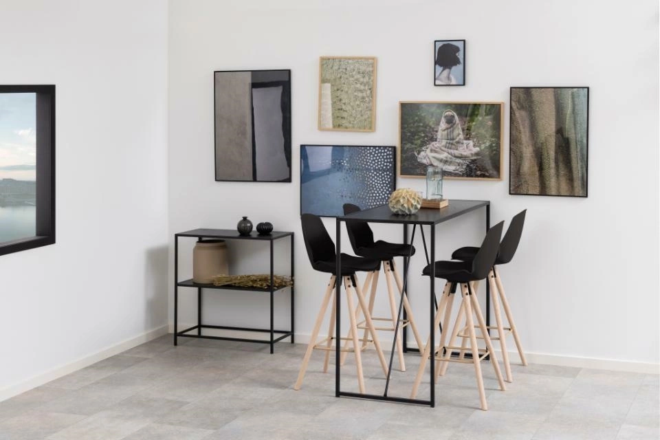 Stołek barowy na dębowych nogach Oslo to nowoczesny i praktyczny mebel do modnej wyspy. Jego design lekko wkomponuje się w każdą aranżację, wnosząc klimat komfortu i elegancji. Siedzisko wyprofilowane dla jak największej satysfakcji i wygody. Na siedzisku umieszczona została poduszka obita wysokiej jakości ekoskórą w szarym czarnym. Jest to materiał tapicerski o dużej wytrzymałości, bardzo mocny i łatwy w utrzymaniu czystości, a więc idealny do codziennego użytkowania. Drewniane nogi w oryginalnym, nadającym stabilność kształcie, zostały wzmocnione metalowymi akcentami, nie tylko dla wytrzymałości ale też dla podkreślenia nowoczesnej stylistyki. Waga: 6,5 kg. Wymiary kartonu: 46,5cm x 25,5cm x 75,5cm Wysokość siedziska: 77 cm Szerokość siedziska: 40 cm Głębokość siedziska: 37 cmPodmiot odpowiedzialny za ten produkt na terenie UE