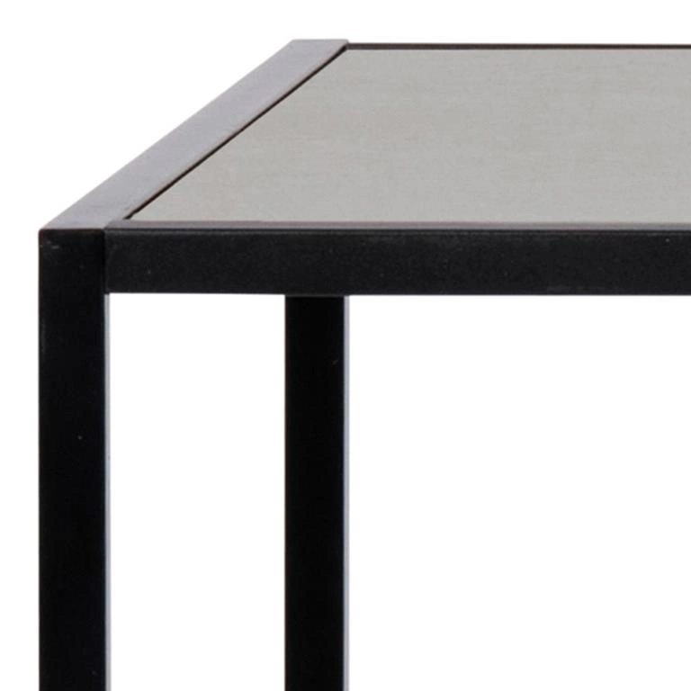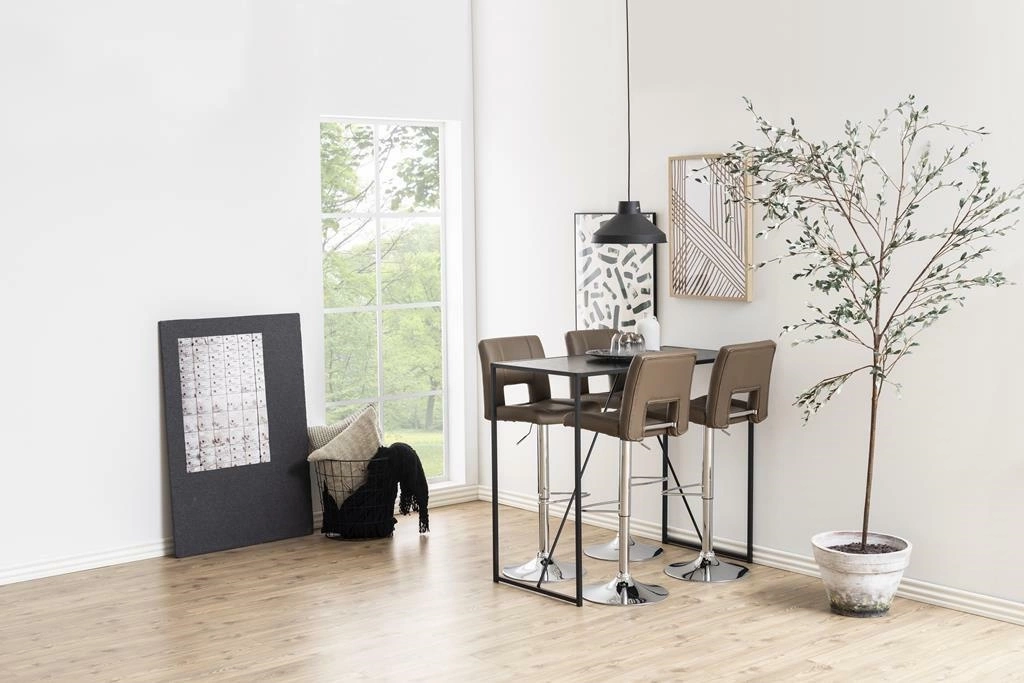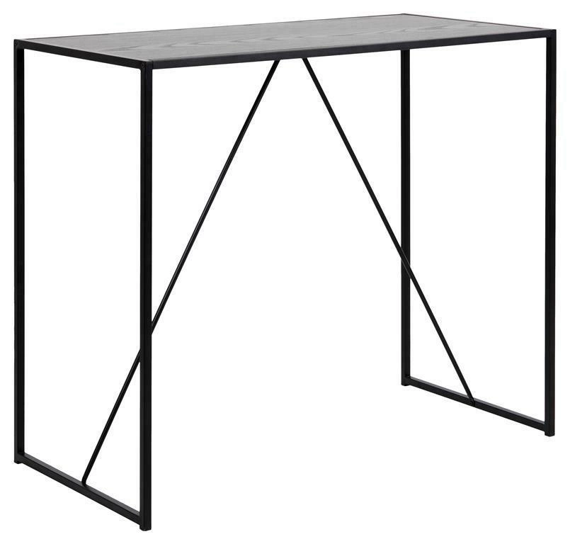 Stół barowy Seaford sprawdzi się świetnie w minimalistycznych wnętrzach. Szkielet mebla został wykonany z malowanego proszkowo metalu, zaś blat to płyta w czarnej okleinie. Pod blatem znajdują się dwa ułożone pod kątem elementy, które oprócz roli dekoracyjnej dodatkowo stabilizują podstawę. Stół nada się do kuchni bądź jadalni, a także do przestrzeni publicznych takich jak bary czy restauracje. Ilość kartonów: 1 Wymiary kartonów: 121x62,5x7,5cm Waga kartonów: 14,2kg