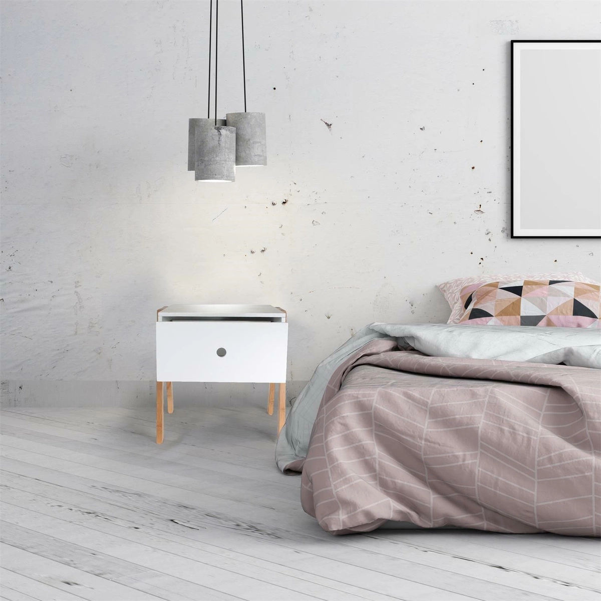 Szafka nocna jest meblem, który jest nie tylko funkcjonalnym dodatkiem do aranżacji sypialni, ale pełni także rolę ozdoby. Połączeniem koloru szarego i naturalnego drewna sosnowego jest charakterystyczne dla wnętrz loftowych. Prosta forma korpusu wykonana z laminowanej płyty z obrzeżem PCV opiera się na minimalistycznej, drewnianej konstrukcji, pokrytej półmatowym lakierem. Szafka posiada pojemną szufladę. Szafka sztapluje się Wymiary opakowania 36,5 x 10 x 50 cm Waga: 7,1 kg Max obciążenie: 20kg