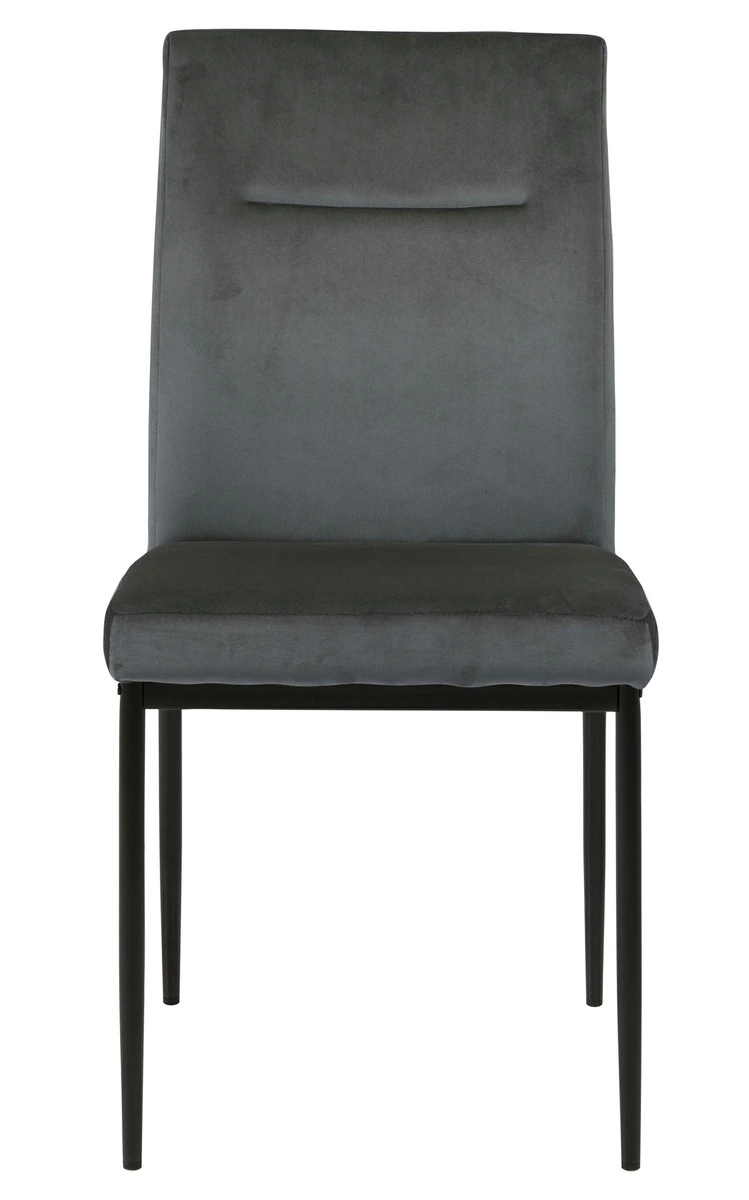 Krzesło Demi to nowoczesny design, który krzesło wniesie do wnętrza. Krzesło Demi to mebel w stylu klasycznym, ale odnajdzie się również we wnętrzu boho lub loftowym. Podstawę krzesła stanowią czarne metalowe nogi malowane proszkowo, dzięki czemu pokrycie jest gładkie i odporne na rysy. Półmatowe wykończenie nóg krzesła sprawia, że jest ono niezwykle funkcjonalne. Mebel posiada zgrabny korpus, pokryty aksamitną tkaniną w kolorze szarym. Materiał jest miły i przyjemny w dotyku, zatem bez wątpienia wpłynie korzystnie na komfort podczas użytkowania. Wymiary kartonu: 51,0 x 34,0 cm x 110,0cm Max. 2 szt w kartonie