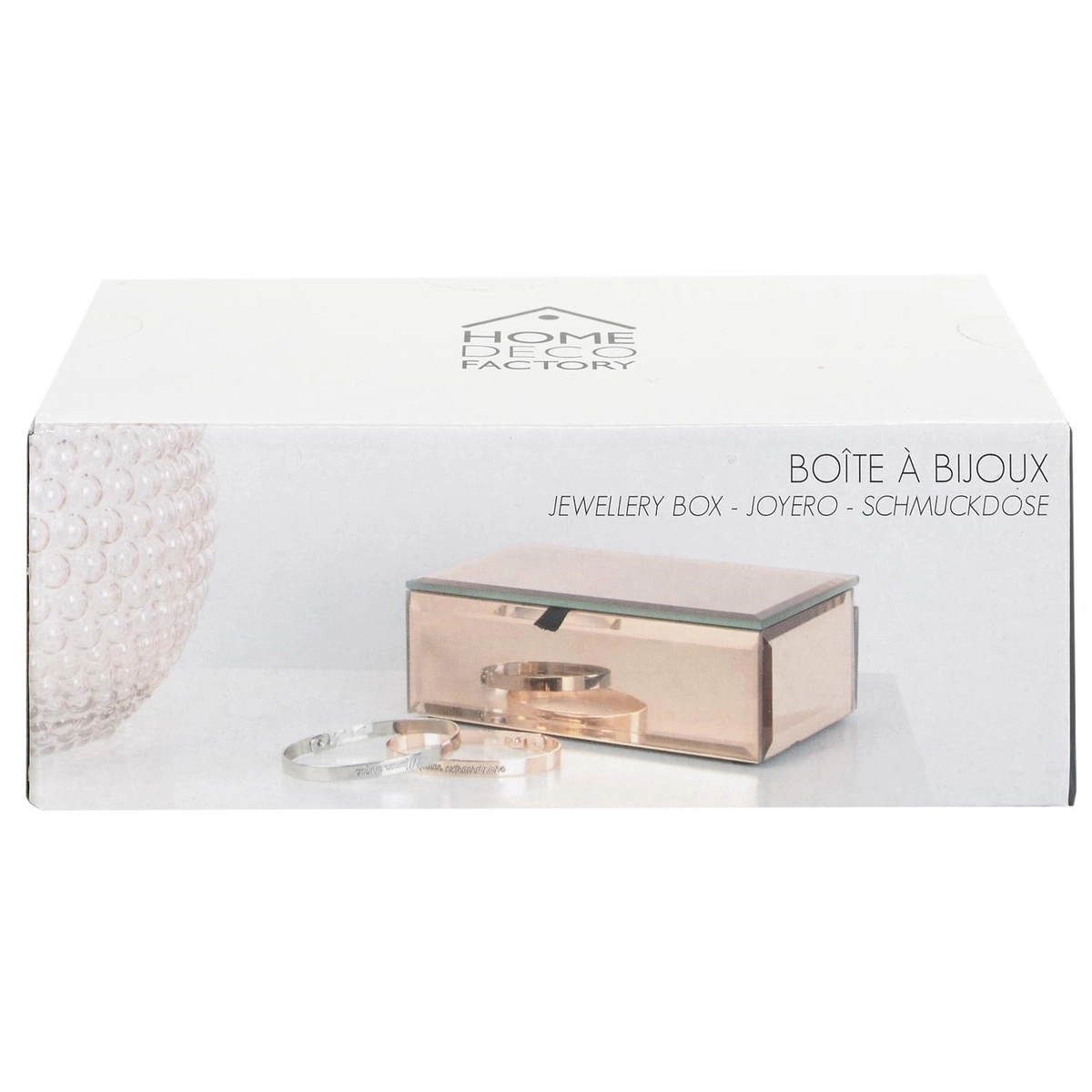 Piękna szkatułka na biżuterię z miedzianego szkła będzie świetnie wyglądać na Twojej toaletce. Przechowuj w nim swoją najpiękniejszą biżuterię i ciesz się nie tylko idealnym porządkiem w biżuterii ale również z ciekawej aranżacji dzięki sztkatułce. Lustrzana szkatułka w kolorze różowego złota sprawdzi się we wnętrzu glamour. Wymiary kartonu: 27x15x36cm, Max 8szt w kartonie