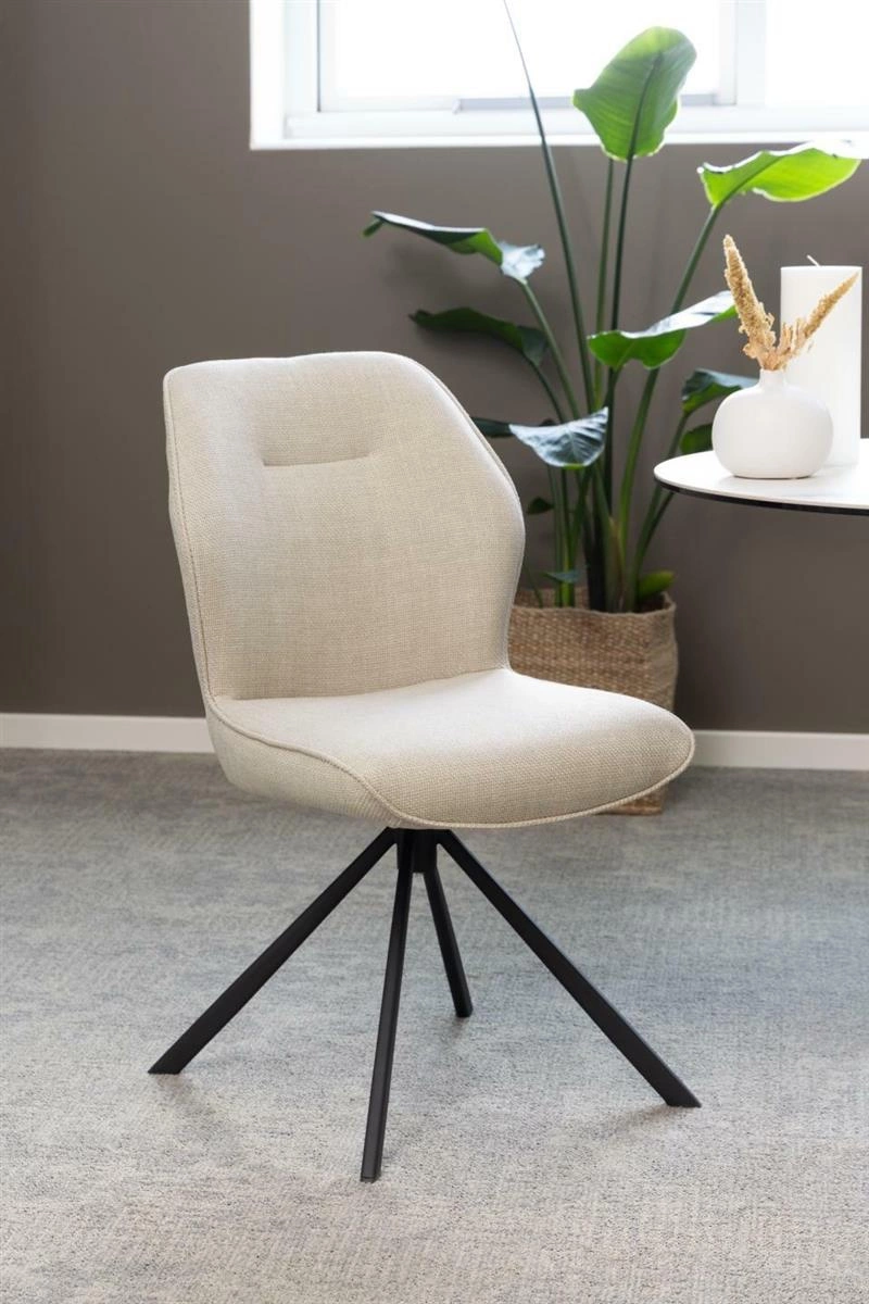 Krzesło obrotowe Aura posiada charakterystyczną sylwetkę i cechuje się nowoczesną elegancją. To krzesło do jadalni jest idealne do każdego nowoczesnego domu. Siedzisko tapicerowane jest beżową tkaniną o eleganckim wyglądzie. Aby jeszcze bardziej podkreślić nowoczesny wygląd przy projektowaniu wykorzystano czarną metalową podstawę w kształcie 4 ramiennej gwiazdy. Co ważne podstawa ma funkcję obrotową. Główne cechy Nowoczesne krzesło do jadalni z odrobiną elegancji Tapicerowane ciemnoszarą tkaniną z efektem dwóch odcieni Czarna, szorstka, malowana proszkowo metalowa podstawa z funkcją obrotu Wyraziste detale z lamówki Duński projekt chroniony wyłącznie dla Actona Szerokość siedziska: 48cm Głębokość siedziska: 44,5cm Wysokość oparcia: 45cm Ilość kartonów: 1 Wymiary kartonów: 65x88x51cm Waga kartonów: 8,5kgPodmiot odpowiedzialny za ten produkt na terenie UE