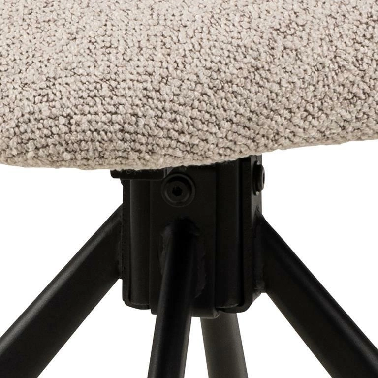 Oryginalne krzywizny siedziska i smukła czarna metalowa podstawa nadają krzesłu wyjątkowy wygląd. Beżowe obicie z miękkiej tkaniny bouclé o kręconej strukturze sprawia, że krzesło wygląda wyjątkowo. Jego istotną cechą jest również obrotowa podstawa zapewniająca niesamowitą wygodę. Główne cechy : Ergonomicznie ukształtowane siedzisko Tapicerowane beżową tkaniną bouclé o kręconej strukturze Subtelne przeszycia w 3 miejscach Smukła czarna metalowa podstawa obrotowa dla kontrastu Duński projekt chroniony wyłącznie dla Actona Certyfikat FSC Ilość kartonów: 1 Wymiary kartonów: 66x57x50cm Waga kartonów: 10kg Szerokość siedziska: 46cm Głębokość siedziska: 43cm