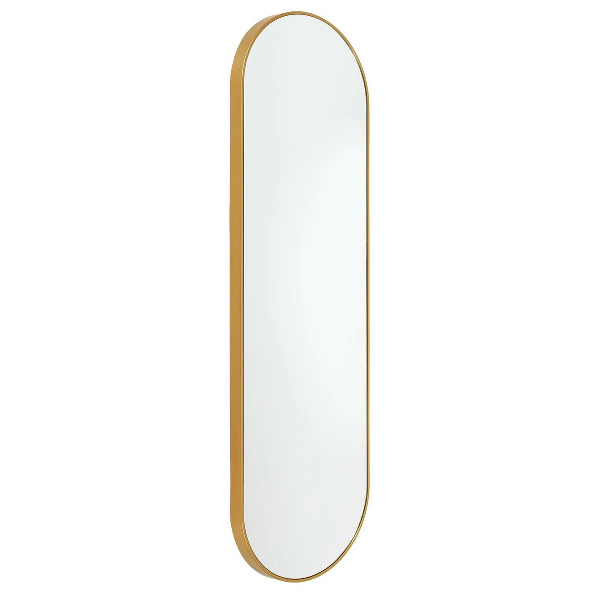 Lustro Camomille to uroczy dodatek do eleganskiej łazienki czy sypialni w stylu boho. Wiszące lustro o owalnym kształcie posiada plastikową ramę w kolorze złotym. Dzięki smukłej formie nada wnętrzu lekkości. Będzie się pięknie komponować z roślinami oraz minimalistycznymi dodatkami. Ilość kartonów: 1 Wymiary kartonów: 30x100x3cm