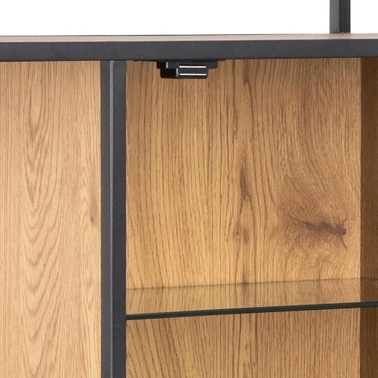 Wybierz regał, który zapewnia mnóstwo miejsca do przechowywania, a jednocześnie zwiększa przytulność w Twojej przestrzeni. Półki pokryte fornirem w kolorze dzikiego dębu są osadzone w czarnej metalowej ramie, która tworzy odświeżający kontrast. Pośrodku regału, na szklanych półkach za drzwiami z hartowanego szkła, można umieścić ulubione dekoracje, aby je dodatkowo wyróżnić . Główne cechy : Nowoczesny regał z asymetrycznymi detalami 8 półek w kolorze matowego dębu dzikiego Drzwi z przezroczystego szkła hartowanego ze szklanymi półkami za nimi Metalowa rama malowana proszkowo na czarno Duński projekt chroniony wyłącznie dla Actona Ilość kartonów: 2 Wymiary kartonów: 190x37,5x11,5cm 101,5x60x14cm Waga kartonów: 19kg, 22kgPodmiot odpowiedzialny za ten produkt na terenie UE