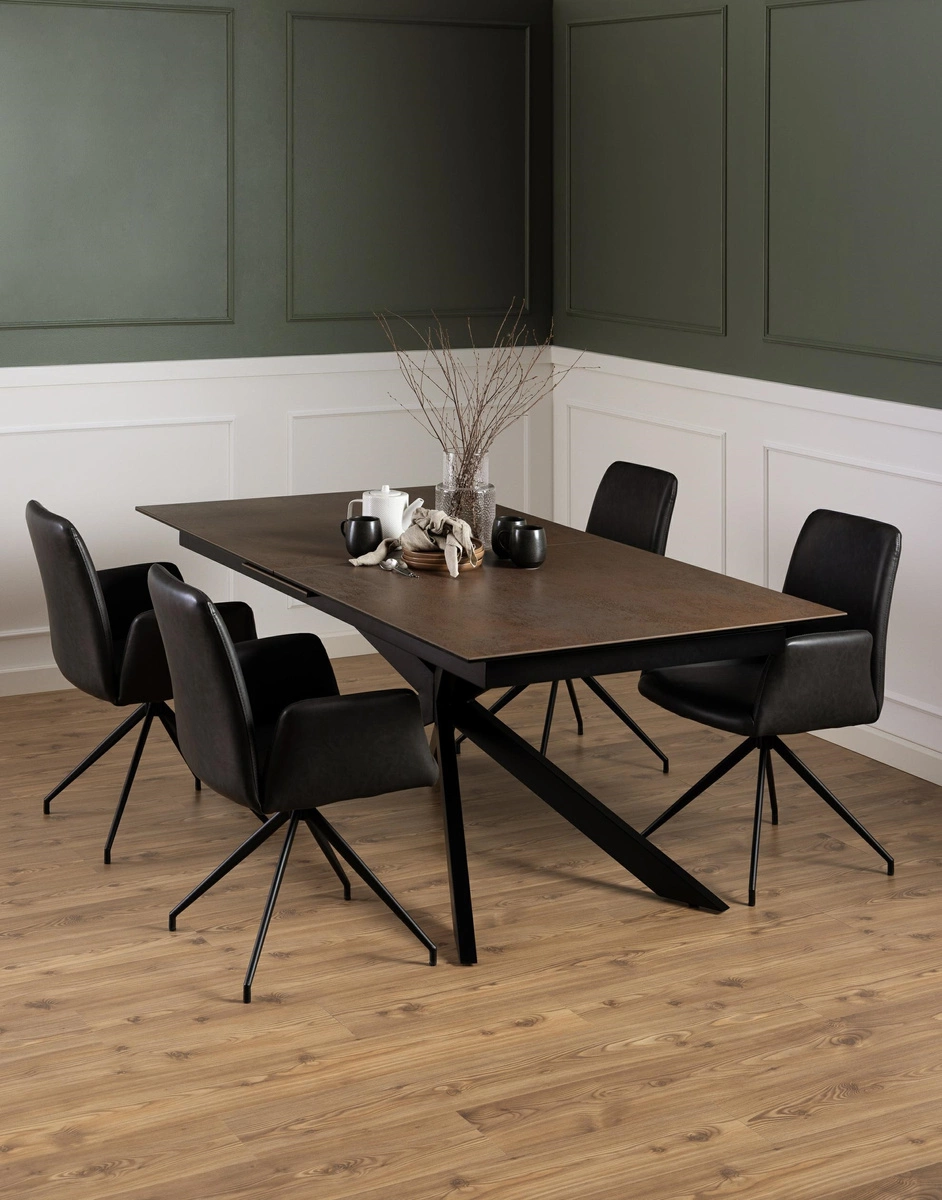 Rdzawobrązowy ceramiczny blat nadaje stołowi Irwine industrialny charakter. Stół można łatwo przedłużyć dzięki dodatkowemu elementowi blatu. Wystarczy delikatnie pociągnąć za koniec stołu, a na środku pojawi się pasujące przedłużenie. Całość dopełnia czarna podstawa w kształcie krzyża, która została zaprojektowana tak, aby można było wygodnie usiąść wokół stołu. Główne cechy : Praktyczny stół do jadalni w industrialnym stylu Odporny na ciepło i zarysowania rdzawobrązowy blat ceramiczny Synchronicznie wysuwane skrzydło z dopasowanej ceramiki Podstawa krzyżowa malowana proszkowo na czarno Duński design chroniony wyłącznie dla Actona Wygodne miejsca dla 8/10 osób bez/ze skrzydłem przedłużającym Ilość kartonów: 2 Wymiary kartonów: 208x108x12,5cm 91x70x9cm Waga kartonów: 96kg 17kgPodmiot odpowiedzialny za ten produkt na terenie UE