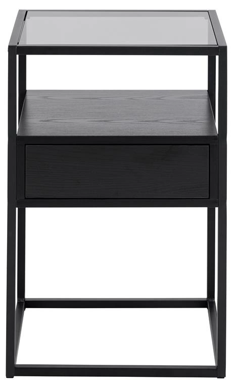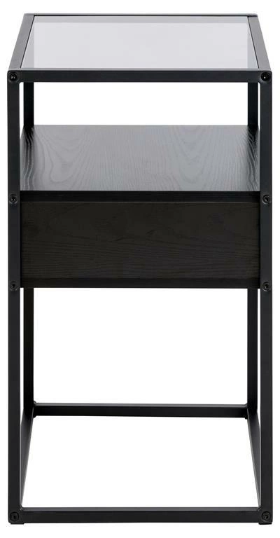 Dzięki charakterystycznej sześciennej metalowej ramie, ten stolik nocny będzie doskonałym dodatkiem do każdej nowoczesnej sypialni. Przydymiony szklany blat jest idealny do wyeksponowania książek lub roślin, a szuflada pod spodem w kolorze czarnego jesionu pomieści każdy bałagan. Główne cechy : Blat z hartowanego, przydymionego szkła Szuflada otwierana przyciskiem dla praktycznego przechowywania Sześcienna metalowa rama malowana proszkowo na czarno Wygląd czarnego jesionu z drewnianą strukturą dla naturalnego wrażenia Duński design chroniony wyłącznie dla Actona Ilość kartonów: 1 Wymiary kartonów: 68,5x40x9cm Waga kartonów: 9,8kgPodmiot odpowiedzialny za ten produkt na terenie UE