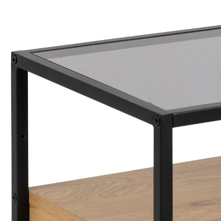 Szafka nocna Randolf to stylowe połączenie elementów szklanych, metalowych i drewnianych. Jej szkielet wykonany jest z malowanego proszkowo metalu w kolorze czarnym. Kwadratowy blat to dymione szkło hartowane, zaś znajdująca się pod nim szuflada to w całości płyta MDF w okleinie w kolorze dębu. Szafka Randolf utrzymana jest duchu stylu industrialnego, spodoba się osobom ceniącym minimalistyczny wystrój. Ilość kartonów: 1 Wymiary kartonów: 68,5x40x9cm Waga kartonów: 9,7kg