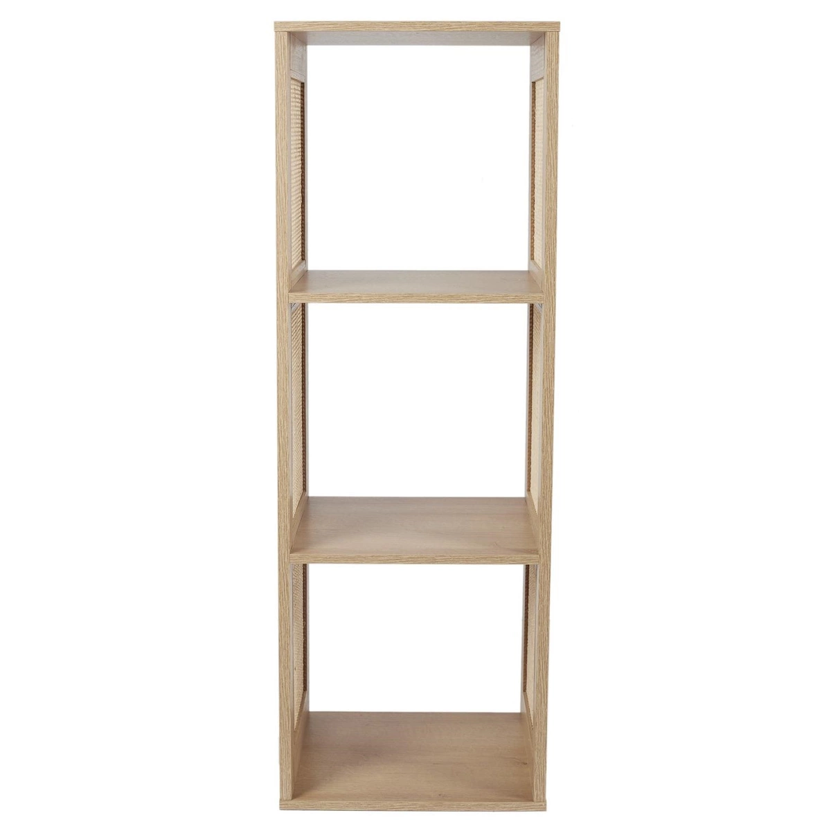 Regał Kali o rattanowym wykończeniu to idealne połączenie wytrzymałej płyty MDF w okleinie imitującej drewno oraz rattanowych, ozdobnych boków. Współgrające ze sobą materiały tworzą mebel idealny do wnętrz w naturalnym stylu czyli boho lub skandi. Regał wymaga samodzielnego montażu. Do regału kompatybilne sa pudełka o wymiarach 30x30x30cm. Wymiary kartonu: 37,5x7,5x102,5 cm