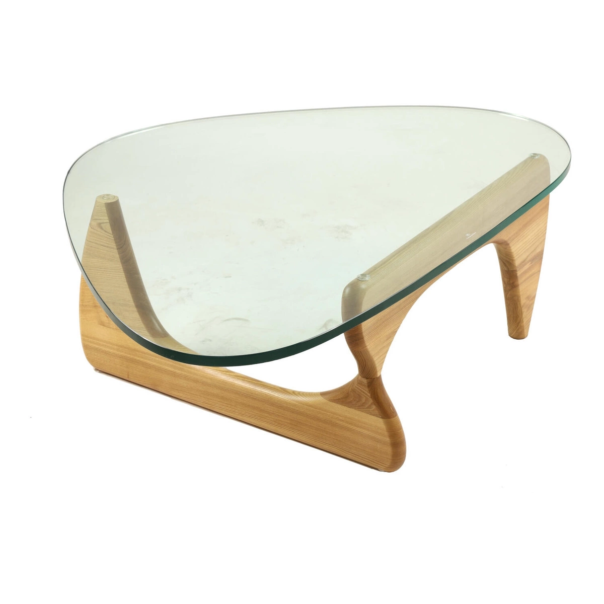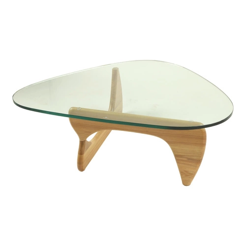 Isamu Noguchi zaprojektował ten piękny i bardzo znany stolik w 1944 roku. Jest on wykonany z drewnianej podstawy i grubego, hartowanego szkła. Stanowi połączenie sztuki oraz praktycznego mebla.,Prezentowany produkt jest inspirowany projektem stolika Noguchi.Blat o grubości 2cm wystarczy położyć na drewnianej podstawie. Stolik wykonany z drewna jesionowego. Ciekawe jasne wybarwienie drewna sprawia, że bedzie on idelanym meblem w centralnej części salonu w stylu boho lub skandi.