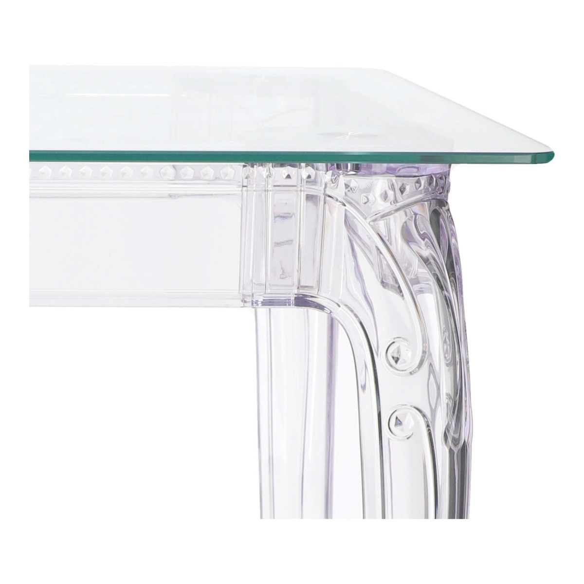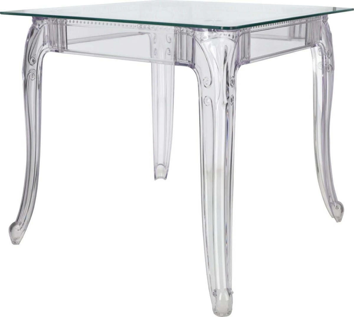 Stół Ghost to połacznie klasycznej wręcz barokowej formy oraz nowoczesnej techniki, oraz wytrzymałych materiałów. Stół Ghost posiada szklany blat o grubości 10 mm, który podpierają bogato zdobione poliwęglanowe nogi. Poliwęglan to bardzo wytrzymałe tworzywo o szerokim zastosowaniu. Dzięki temu, że nogi stołu zostały zrobione ze sztucznego tworzywa, są one odporne na uszkodzenia mechaniczne czy zadrapania i wilgoć. Ghost to doskonały stół do małej jadalni, kuchni lub salonu. Przezroczysta forma mebla sprawia, iż nie przytłacza on pomieszczenia, a wręcz odbija światło i wnętrze wydaje się większe. Grubość blatu: 10 mm Grubość nóg: od 5 do 8,5 cm Wymiary kartonu: 80x20x22 cmPodmiot odpowiedzialny za ten produkt na terenie UE