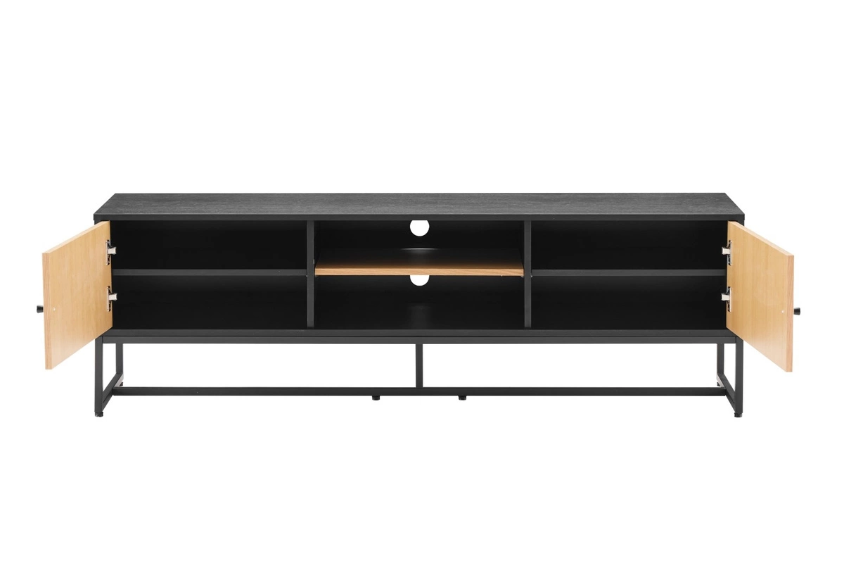 Metalowa rama malowana proszkowo na czarno. Półki i fronty wykonane z MDF z okleiną imitującą dąb Regał: 1 półka i 2 szafki Szafka z funkcją cichego domyku. Wymaga montażu Wymiary kartonu: 171,5x51x13cm