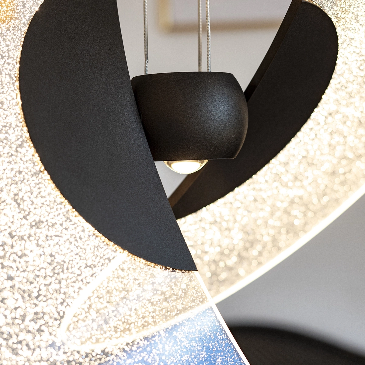 Lampa wisząca NOXA to połączenie futurystycznego designu z subtelną grą światła. Jej niepowtarzalna, asymetryczna forma i wyrafinowane połączenie materiałów sprawiają, że staje się wyjątkowym elementem każdego nowoczesnego wnętrza.