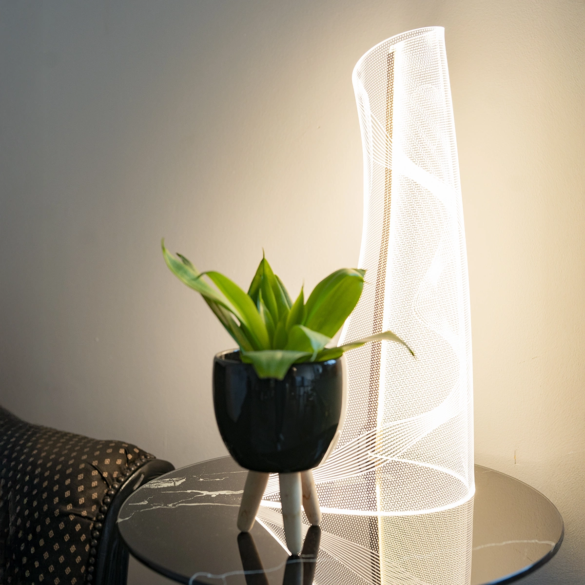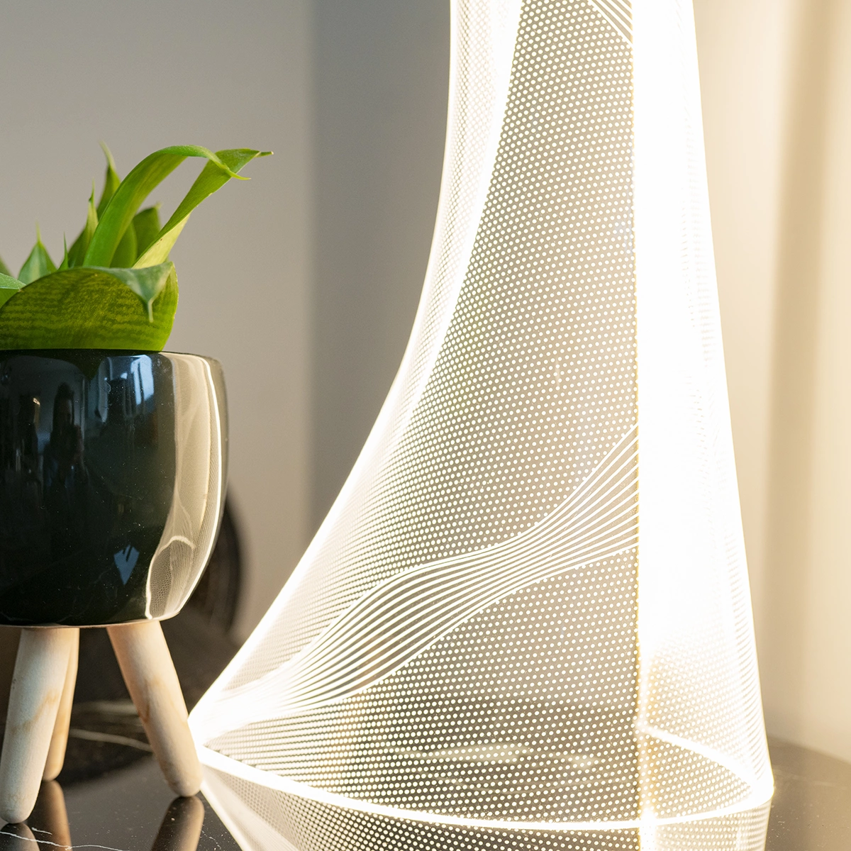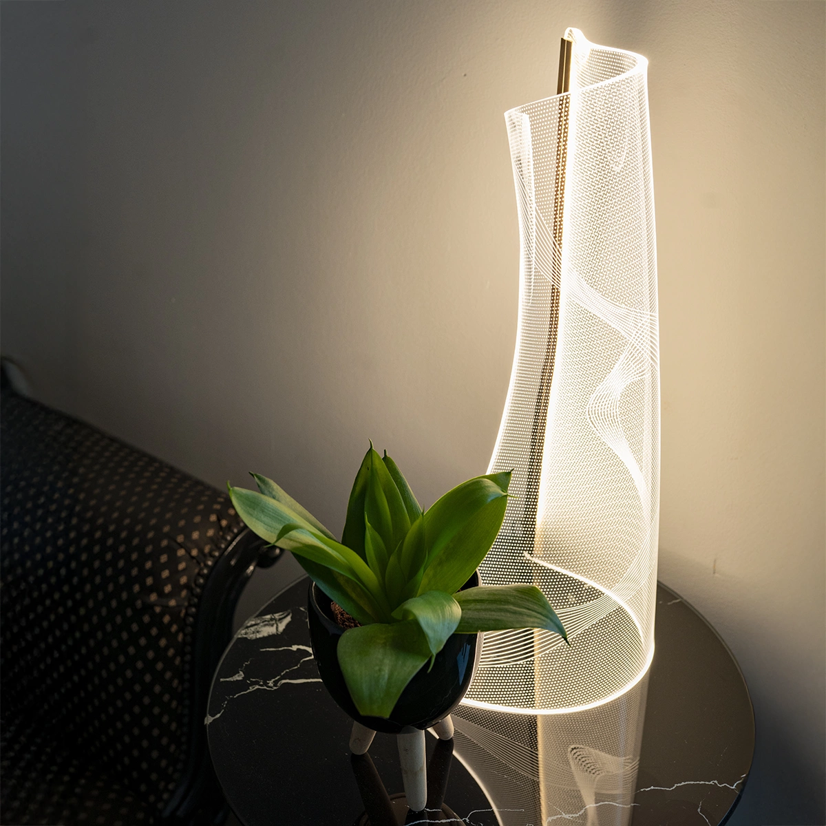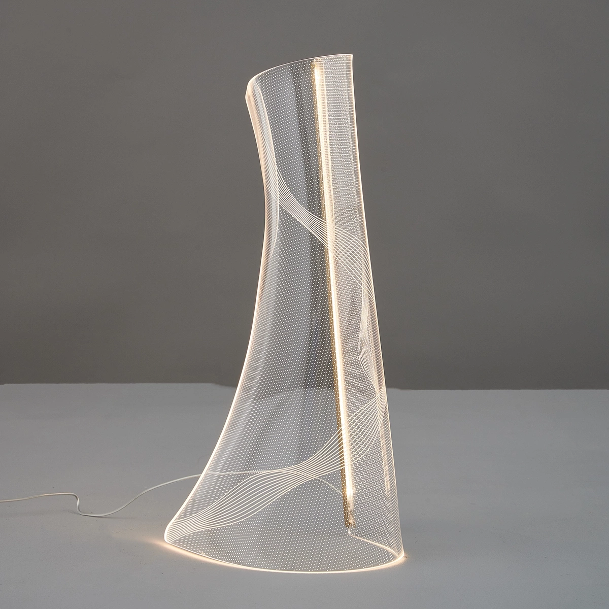 Lampa stojąca CORTINA to wyjątkowe połączenie nowoczesnej technologii i artystycznej elegancji. Jej transparentna, falista konstrukcja w połączeniu z delikatnym światłem LED tworzy efekt lekkiej, niemal eterycznej iluminacji, która dodaje wnętrzu wyjątkowego charakteru.