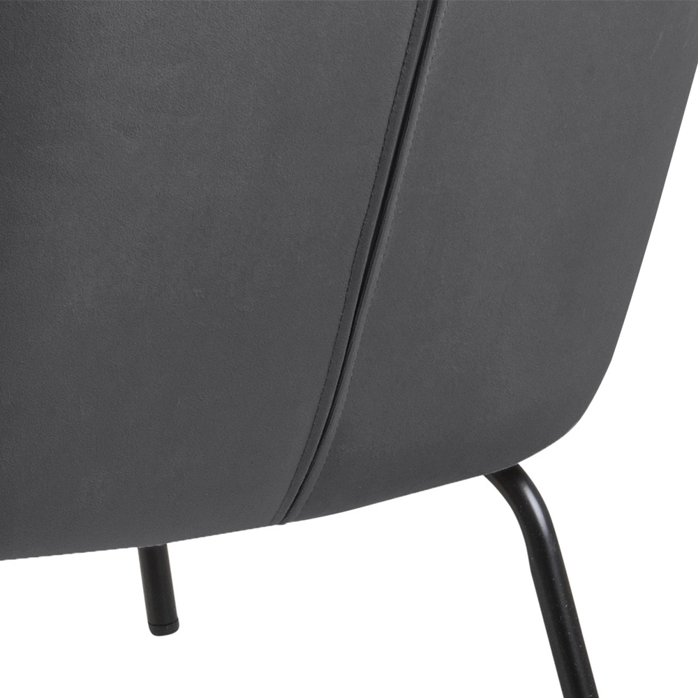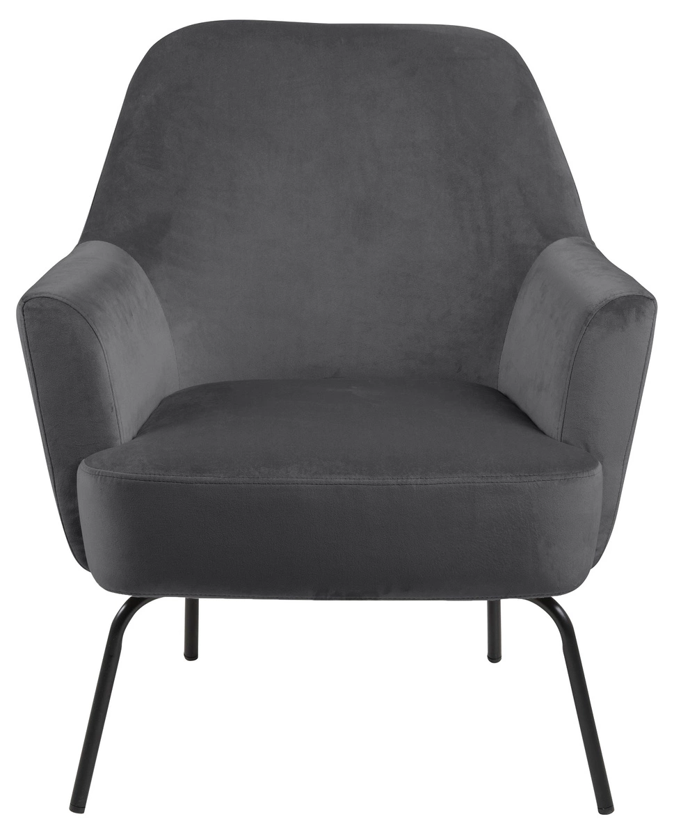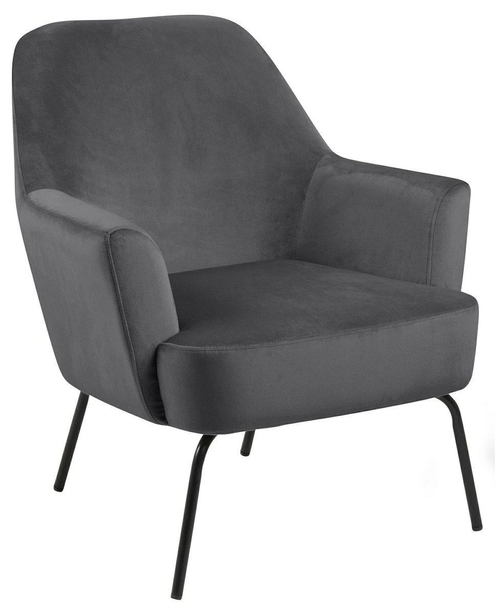 Fotel Felissa to elegancki mebel w stylu glamour. Cztery metalowe, malowane proszkowo nogi zabezpieczone są od spodu specjalnymi nakładkami. Siedzisko i oparcie wykonane jest z pianki poliuretanowej. Fotel tapicerowany jest przyjemną w dotyku tkaniną VIC fabric dark grey 28. Posiada komfotowe w użyciu podłokietniki. Fotel Melissa jest idealny do salonu lub poczekalni w biurze. Wymiary: 75x75x83 cm Waga: 12kg