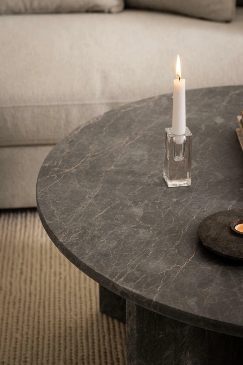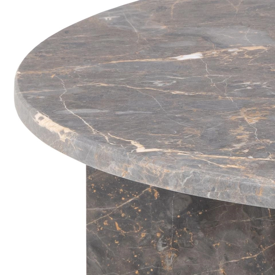 Okrągły stolik kawowy Vega, blat i podstawa to matowy marmur lakierowany w kolorze Marron. Ten stolik kawowy wprowadzi do salonu ponadczasowe wyrafinowanie. Okrągły blat i podstawa w kształcie litery V zostały wyrzeźbione w czystej formie, która nadaje pomieszczeniu charakteru. Wykonany z brązowego marmuru, kamień naturalnie różni się kolorem, strukturą i powierzchnią, dzięki czemu każdy egzemplarz jest wyjątkowy. Jest to rodzaj wyrazistego elementu, który pozostaje aktualny bez względu na trendy. Waga stolika 78 kg. Max. obciążenie 20 kg. Wymaga montażu. Wymiary kartonów: 99x14x111cm i 62x49x68 cm