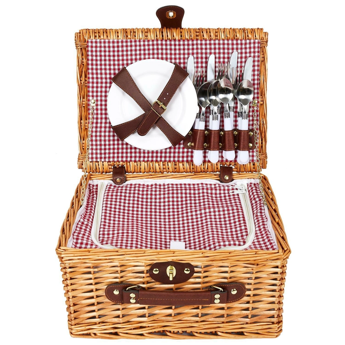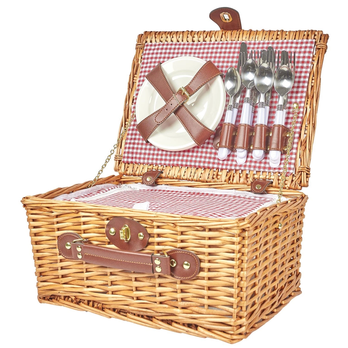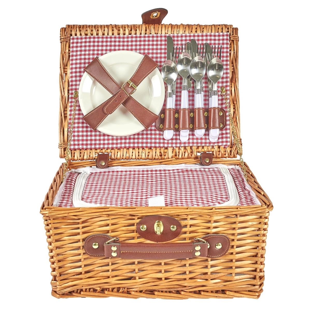 Kosz piknikowy z zastawą dla 4 osób wiklinowy