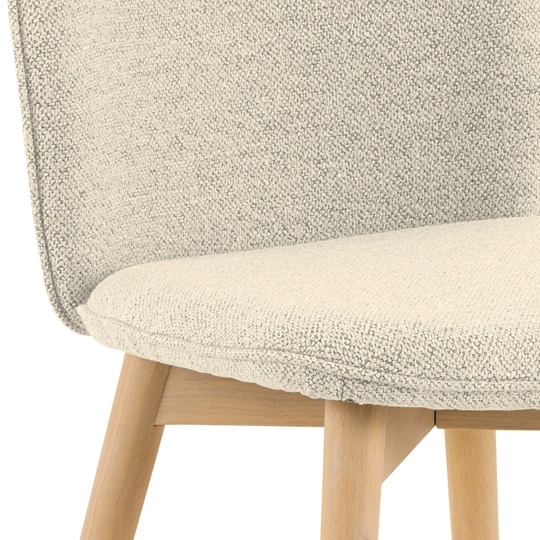 Krzesło Cindy to krzesło do jadalni lub salonu. Zaokrąglone oparcie zapewni wsparcie podczas siedzenia. Krzesło tapicerowane jest miękką tkaniną typu bouclé o kręconej strukturze, która nadaje mu nowoczesnego charakteru. Aby nadać mu lekki, skandynawski wygląd, wsparto go na drewnianych nogach olejowanych oraz bielonych. Krzesło do jadalni Cindy, tkanina Monza w kolorze beżowym 90, podstawa z drewna kauczukowego olejowanego. Wygodne krzesło do jadalni w nowoczesnym, skandynawskim stylu. Tapicerowane beżową tkaniną przypominającą bouclé. Ozdobione lamówką . Certyfikat FSC. Zaprojektowany przez Christinę Aagaard i chroniony wyłącznie dla Actona. Wysokość oparcia 43 cm Szerokość siedziska 49 cm Głębokość siedziska 44,5 cm Max. obciążenie 110kgPotrzebujesz pomocy? Masz pytania?Zadaj pytanie a my odpowiemy niezwłocznie, najciekawsze pytania i odpowiedzi publikując dla innych.