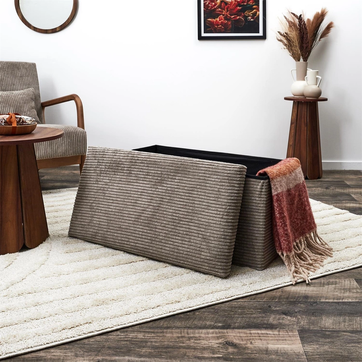 Składana, sztruksowa pufa to połączenie minimalizmu, nowoczesności i stylu skandynawskiego. Jej kolor dodaje elegancji, a wykorzystanie tworzywa i poliestru gwarantuje wytrzymałość i komfort użytkowania. Pufa ma 38 cm wysokości, co sprawia, że idealnie wpasuje się w różne style aranżacji. Pufa o tkaninie z grubego sztruksu to wygodny mebel do przedpokoju lub sypialni.