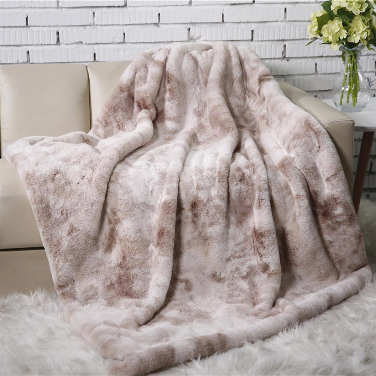 Miękki wygodny koc z włókna poliestrowego sprawdzi się podczas chłodnych wieczorów. Koc w kolorze kremowobrązowym ocieplki wnetrze w nowoczesnym stylu.