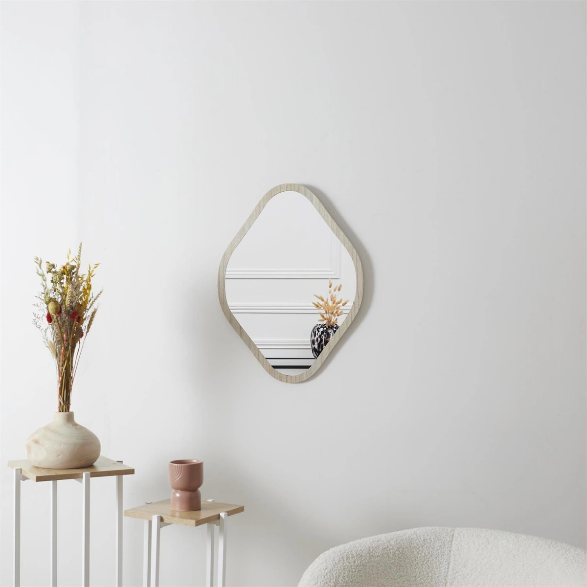 Dodaj odrobinę nowoczesnej elegancji do swojego wnętrza z tym wyjątkowym lustrem dekoracyjnym Diamond o nietypowej formie. Jego unikalny kształt przyciąga wzrok i stanowi doskonały element dekoracyjny, który może być centralnym punktem każdego pomieszczenia. Lustro posiada subtelną ramę w naturalnym odcieniu drewna, która wprowadza ciepło i harmonię do wnętrza. Doskonale komponuje się zarówno w nowoczesnych, jak i klasycznych aranżacjach, dodając im lekkości i stylu. Umieszczone na ścianie, lustro nie tylko optycznie powiększa przestrzeń, ale również odbija światło, rozjaśniając wnętrze. To idealny dodatek do salonu, sypialni, przedpokoju czy biura, który łączy funkcjonalność z estetyką. Stwórz niepowtarzalny klimat w swoim domu dzięki temu pięknemu lustru dekoracyjnemu, które zachwyci każdego swoim designem i jakością wykonania. Materiał: szkło, drewno MDF, stal Waga (gr) 780 Wysokość 60 cm Długość 44 cm Głębokość 1 cmPotrzebujesz pomocy? Masz pytania?Zadaj pytanie a my odpowiemy niezwłocznie, najciekawsze pytania i odpowiedzi publikując dla innych.