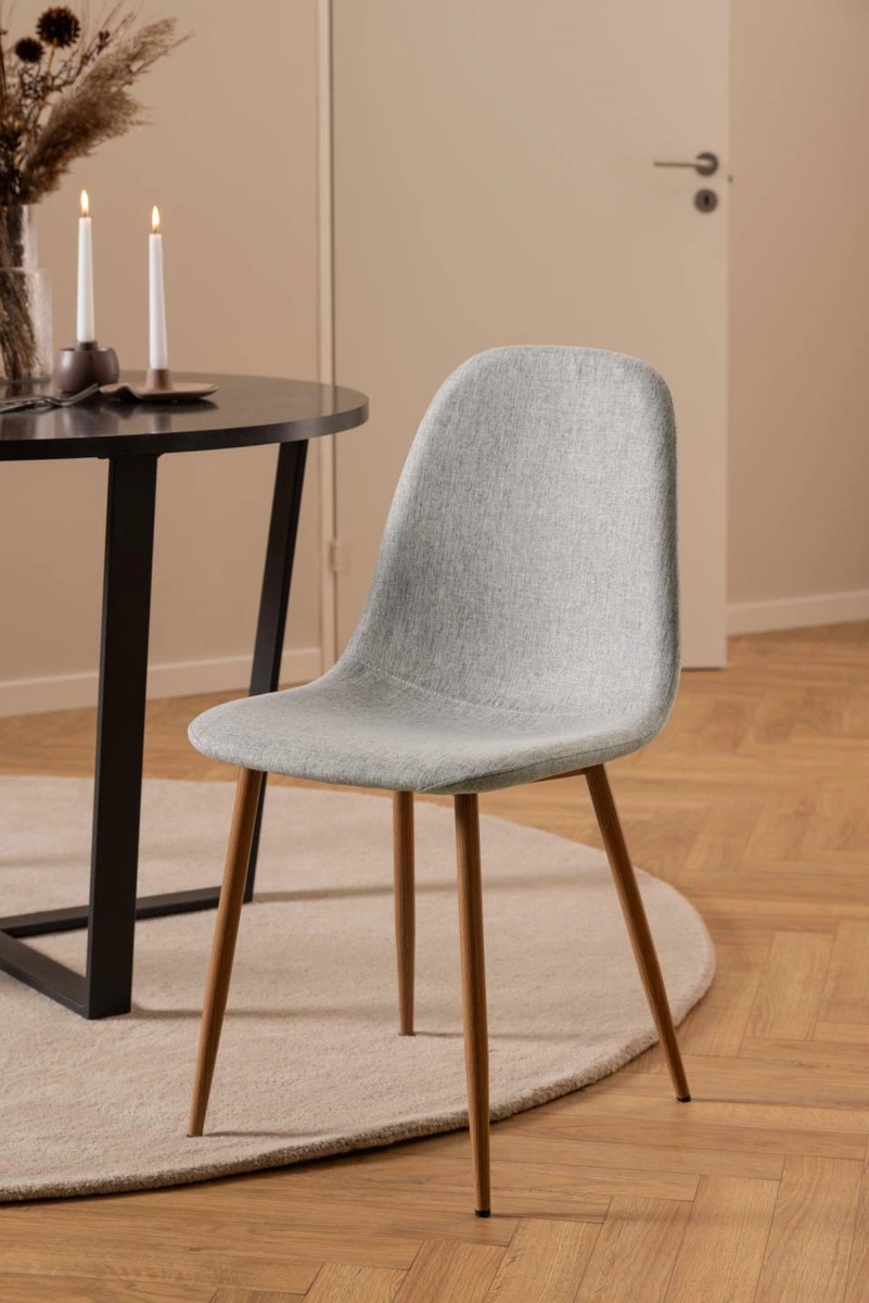 Krzesło do jadalni o uniwersalnym i ponadczasowym wyglądzie, które bez trudu odnajdzie się w każdej jadalni. Wygodne siedzisko, ozdobione poziomymi przeszyciami, wsparte jest na smukłych nogach nadają projektowi wyraźną skandynawską estetykę. Dzięki takiemu wyglądowi krzesło można połączyć z niemal każdym stołem. Wysokość oparcia 47 cm, Szerokość siedziska 44 cm, Głębokość siedziska 40 cm, Wysokość siedziska maks. 46 cm. Wymaga montażu. Max. obciążenie 110 kg, Wymiary kartonu:45x62x67cm